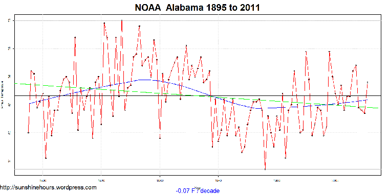 Is the USA warming? The NOAA data says”It depends” – Part 1b Published on April 29, 2012 by sunshinehours1 Part 1b. Part 1 and part 1a explain. This animated gif is the 14 of the 48 lower states cooling or essentially flat since 1895. Click on it for the full effect. Share this: Click to share on X (Opens in new window) X Click to share on Facebook (Opens in new window) Facebook Like Loading... Related