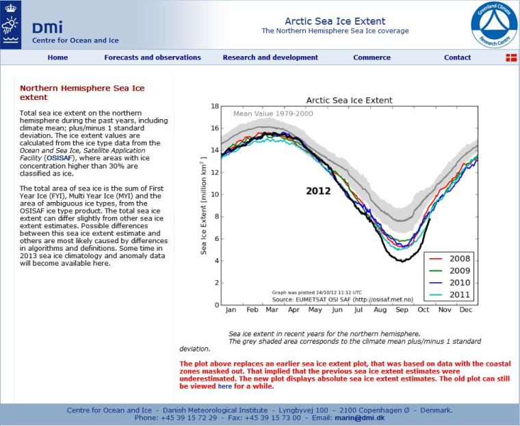 Today there was a new Sea Ice Extent Chart with this text at the bottom: