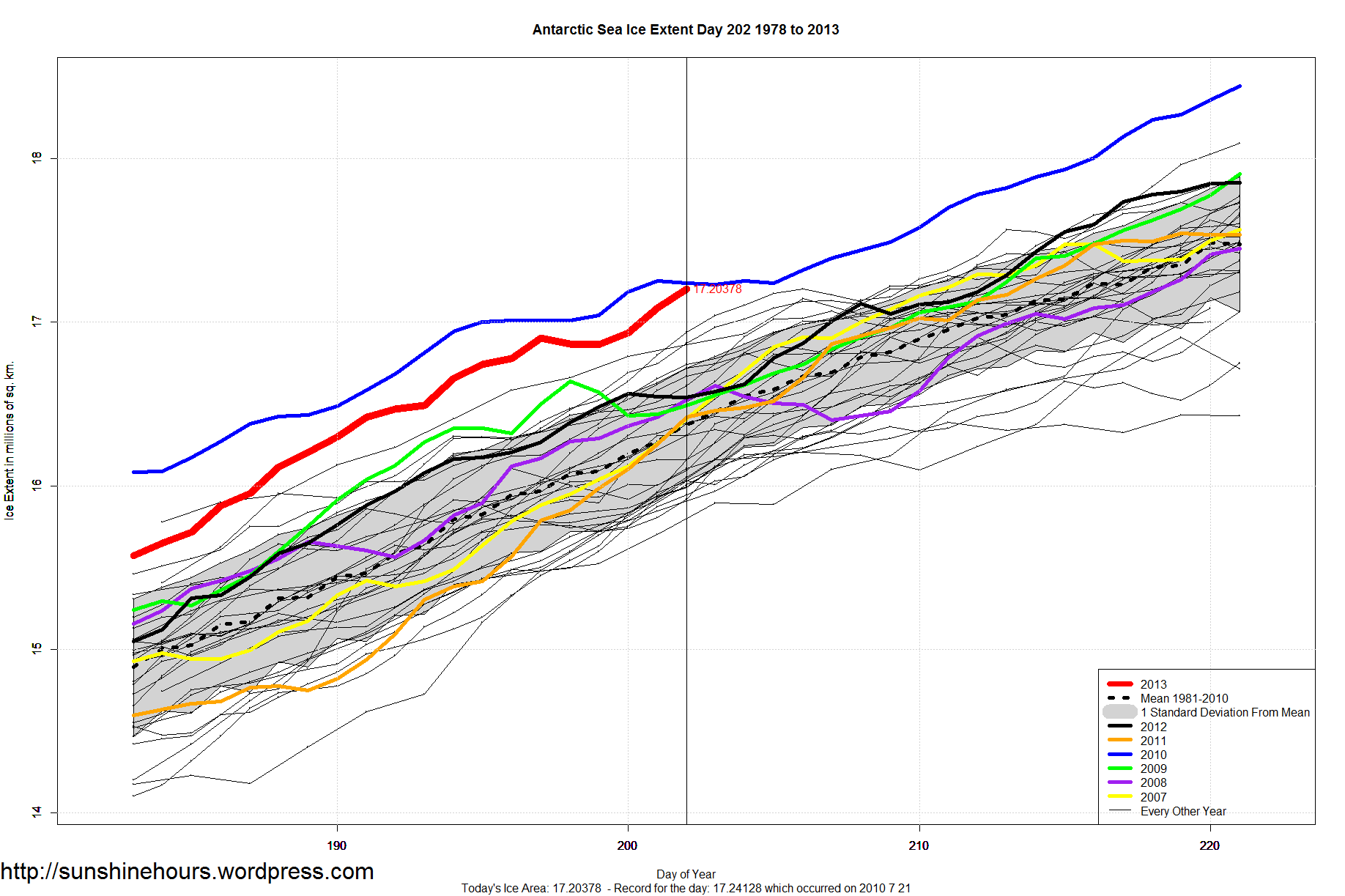 Antarctic Sea Ice Only 37,000 sq km short of record. That is only 0.21% short of a record. Click image for bigger.