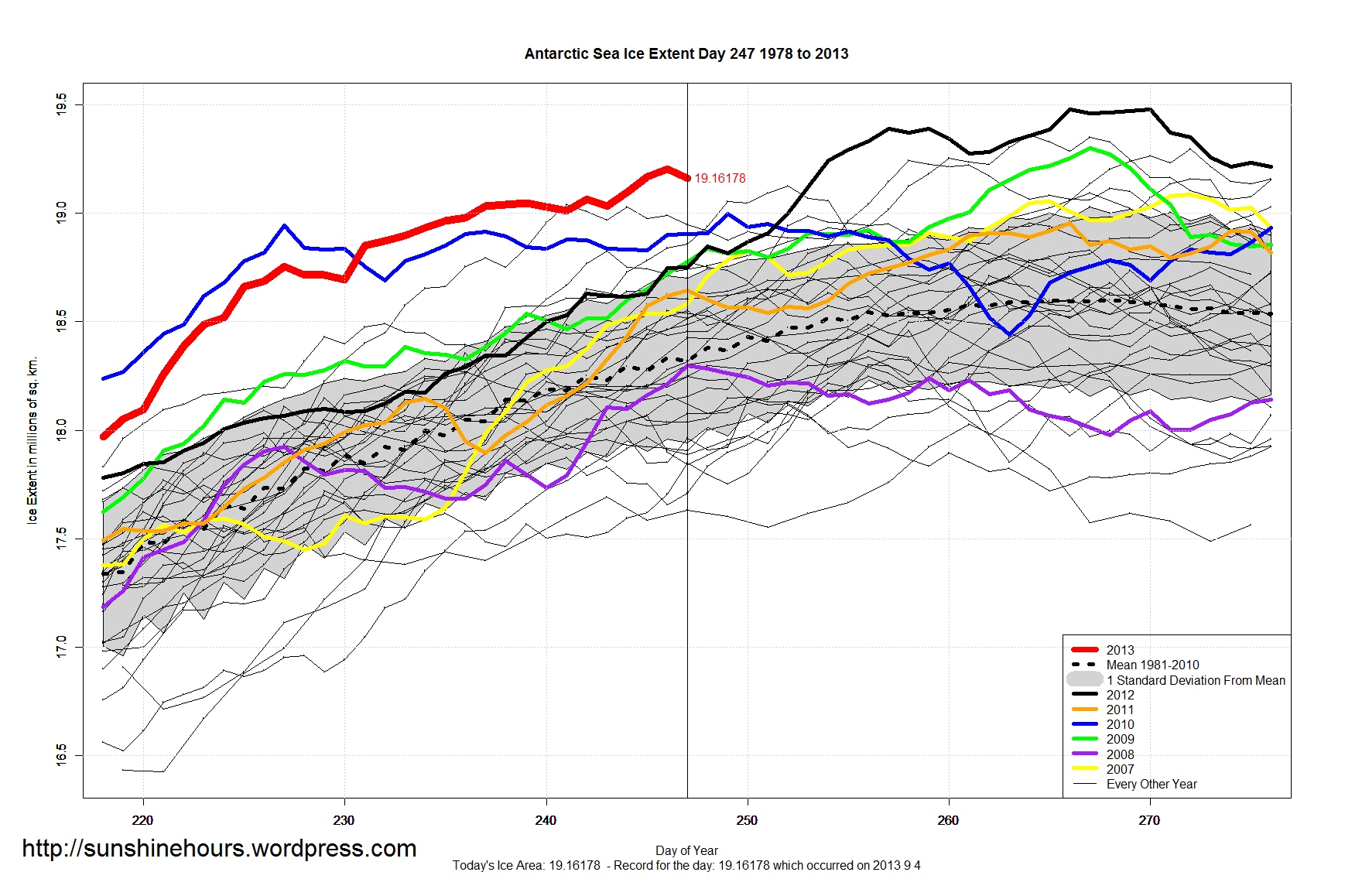 Antarctic Sea Ice Extent is 19.16 million sq km.