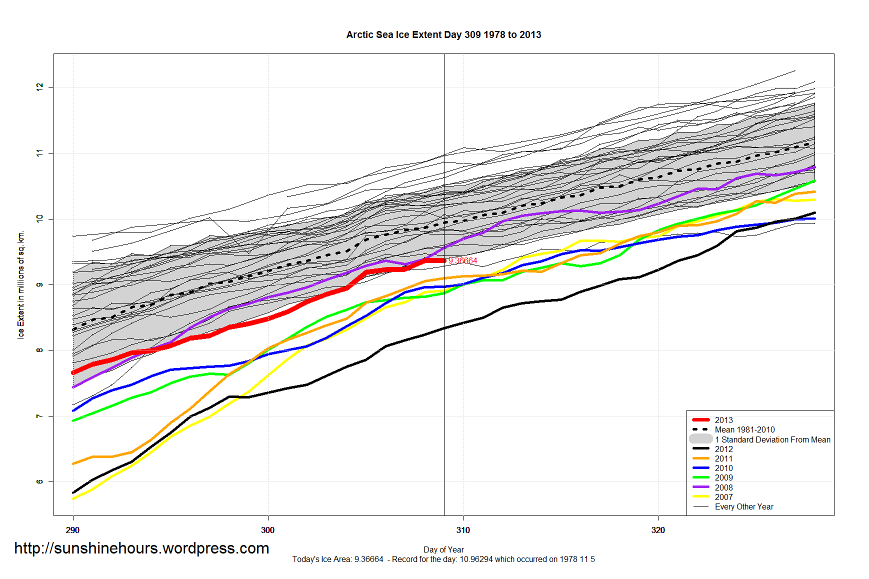 4 thoughts on “Arctic Sea Ice Extent Update Nov 6, 2013