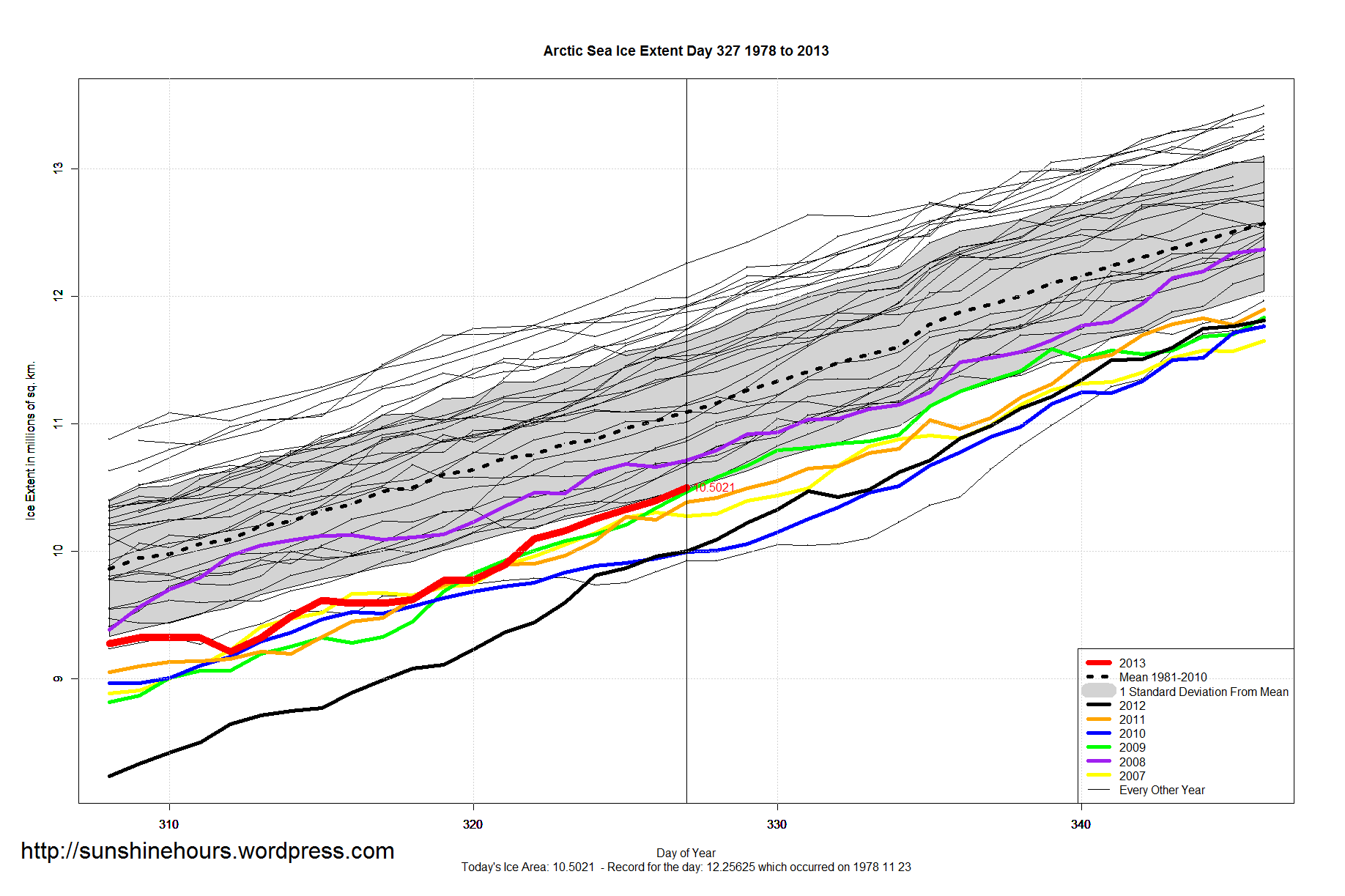 Antarctic Sea Ice Extent is 977,000 sq km above normal – but below the daily record set in 2010 (and probably will be for a while).