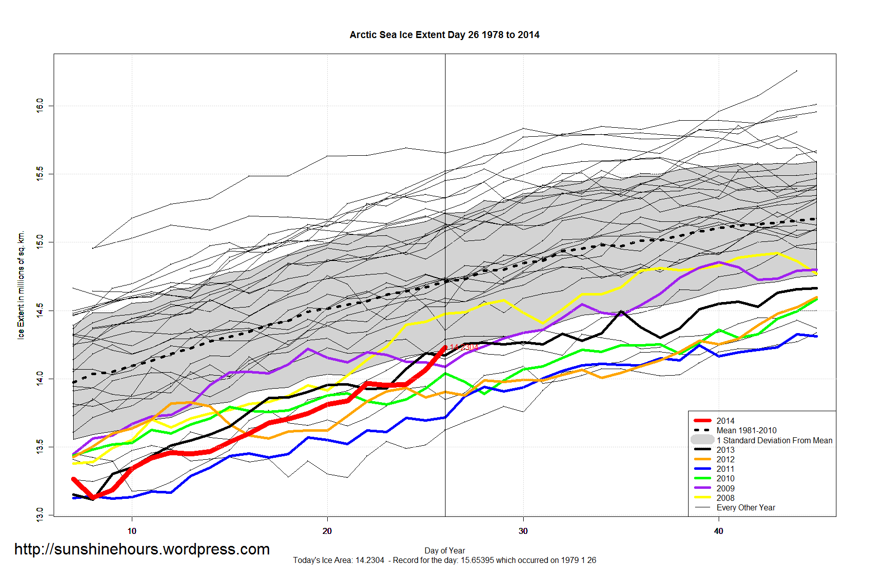 Thanks for all of your hard work and the excellent graphs. The lunatic alarmists will be squirming and fuming trying to explain the increasing polar ice caps. Either that or they will ignore the reality that is bearing down upon them.