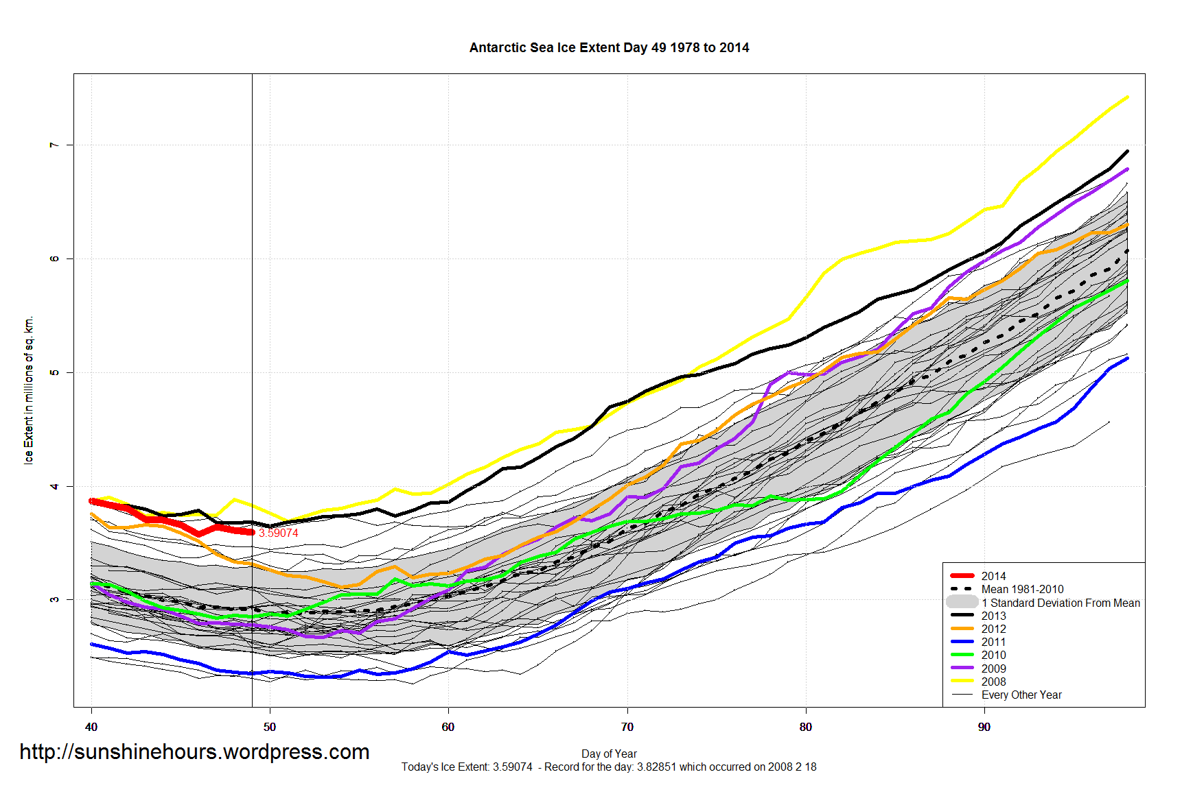 So day 46 could still turn out to be the day of the minimum Antarctic Sea Ice Extent for 2014. But it could still fall below that.