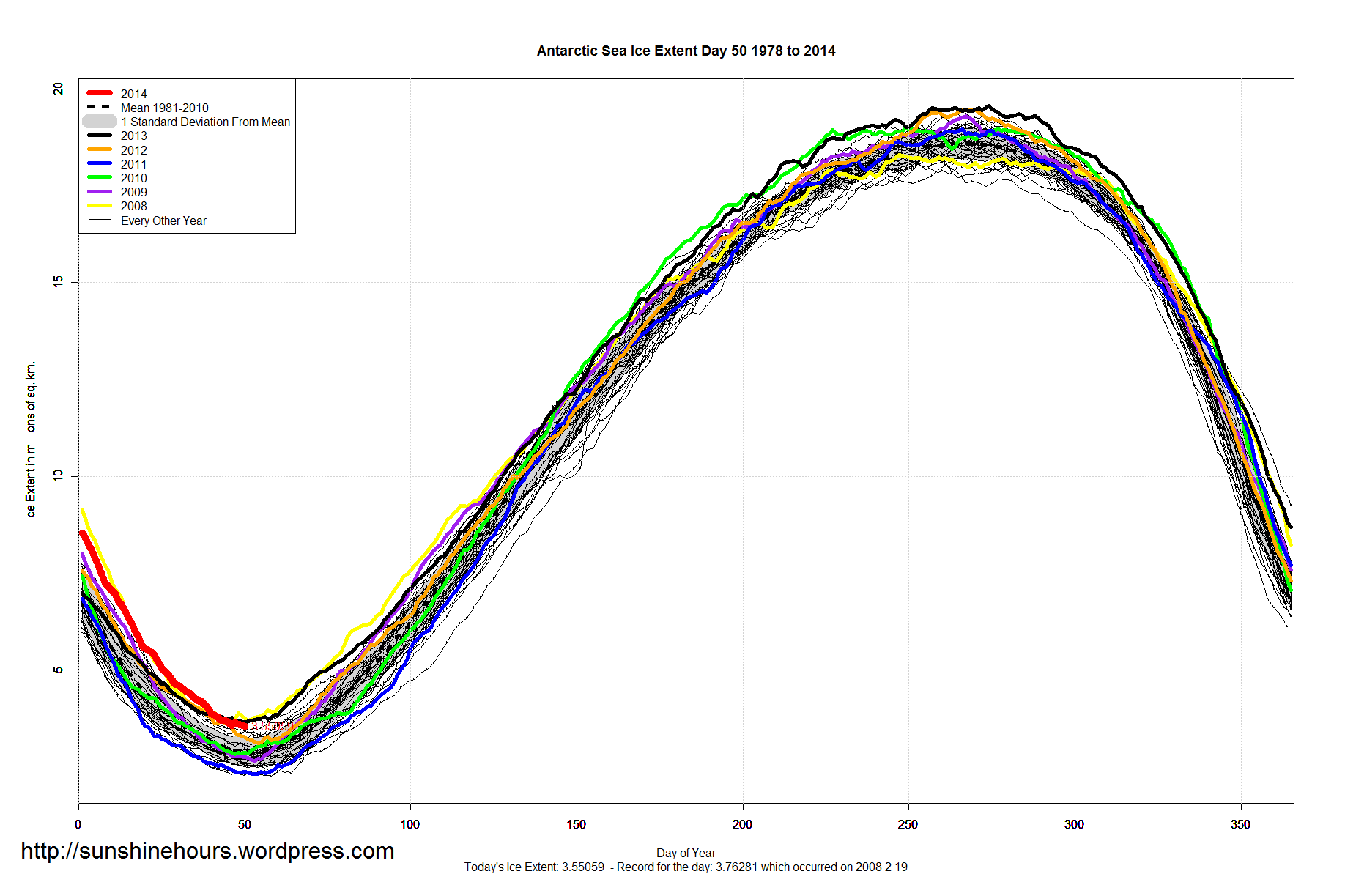 - Antarctic Sea Ice is 671,000 sq km above the 1981-2010 mean. That is 23% above the mean. Antarctic Sea Ice Extent fell 40,000 sq km. and hast not reach minimum yet.