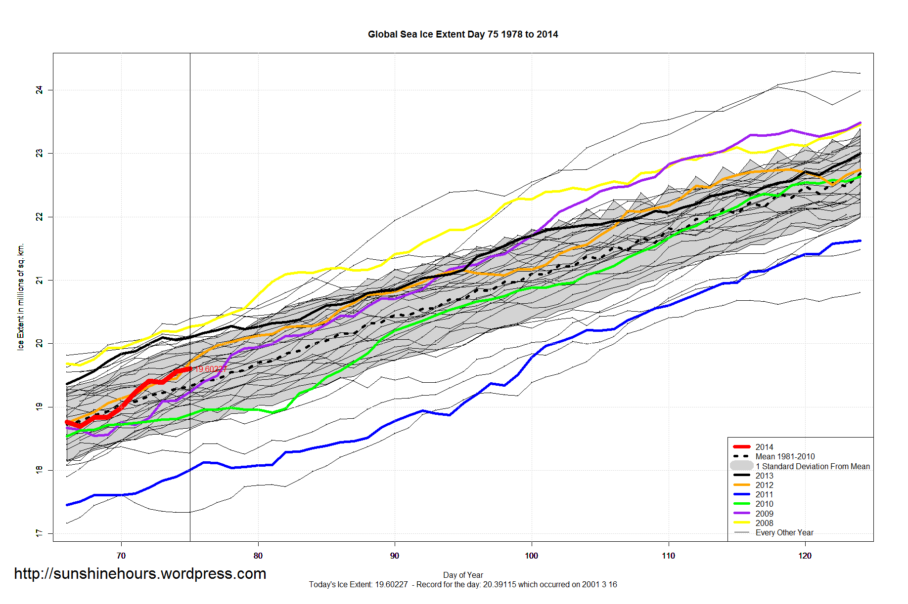 After two days with no data from NSIDC , a quick update for sea ice extent: