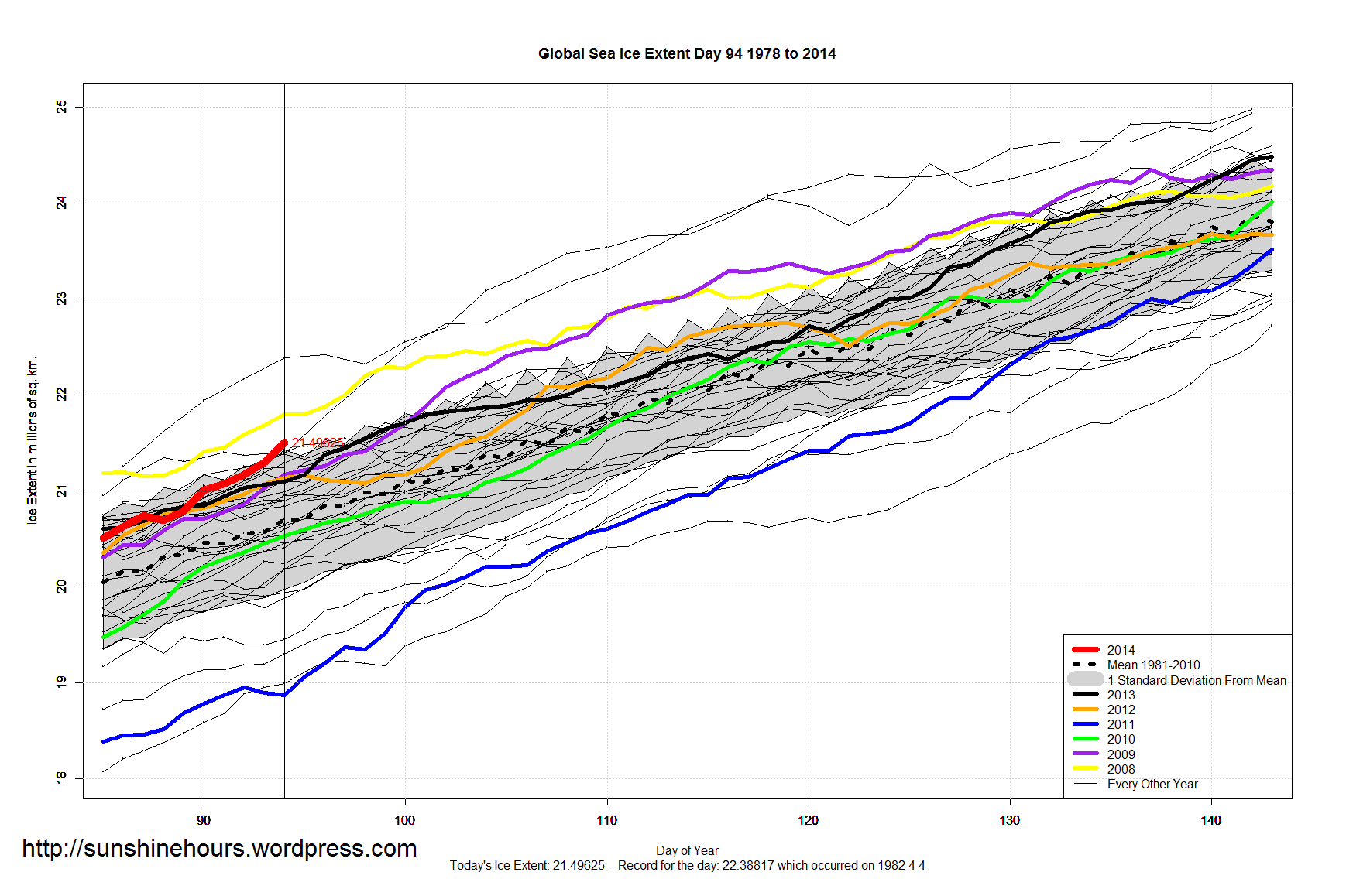 3 thoughts on “Sea Ice Update April 5 2014 – Global Sea Ice 3rd Highest For The Day