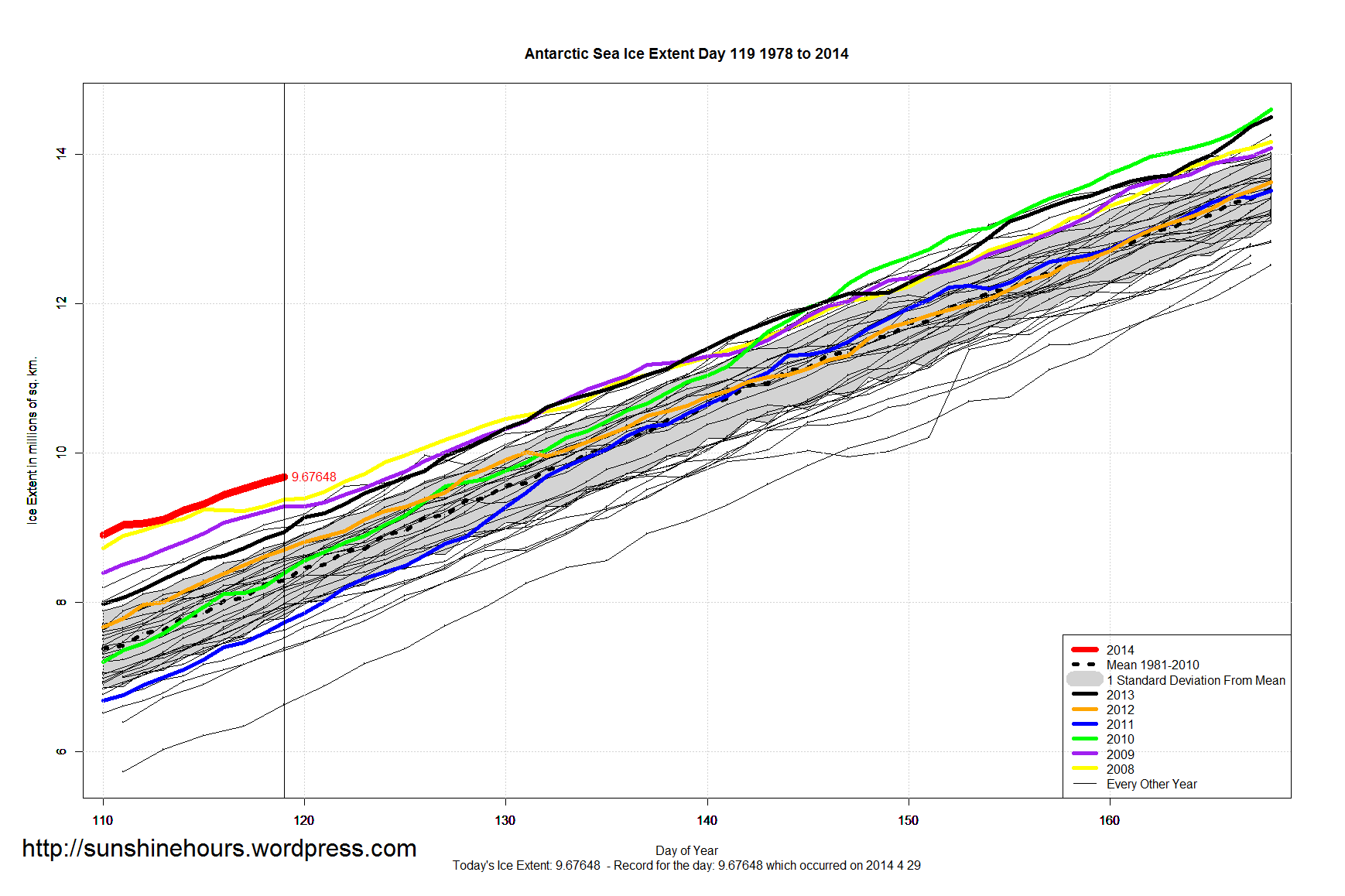 - Antarctic Sea Ice Extent is 1,388,000 sq km above the 1981-2010 mean. That’s the 52nd daily record for 2014.
