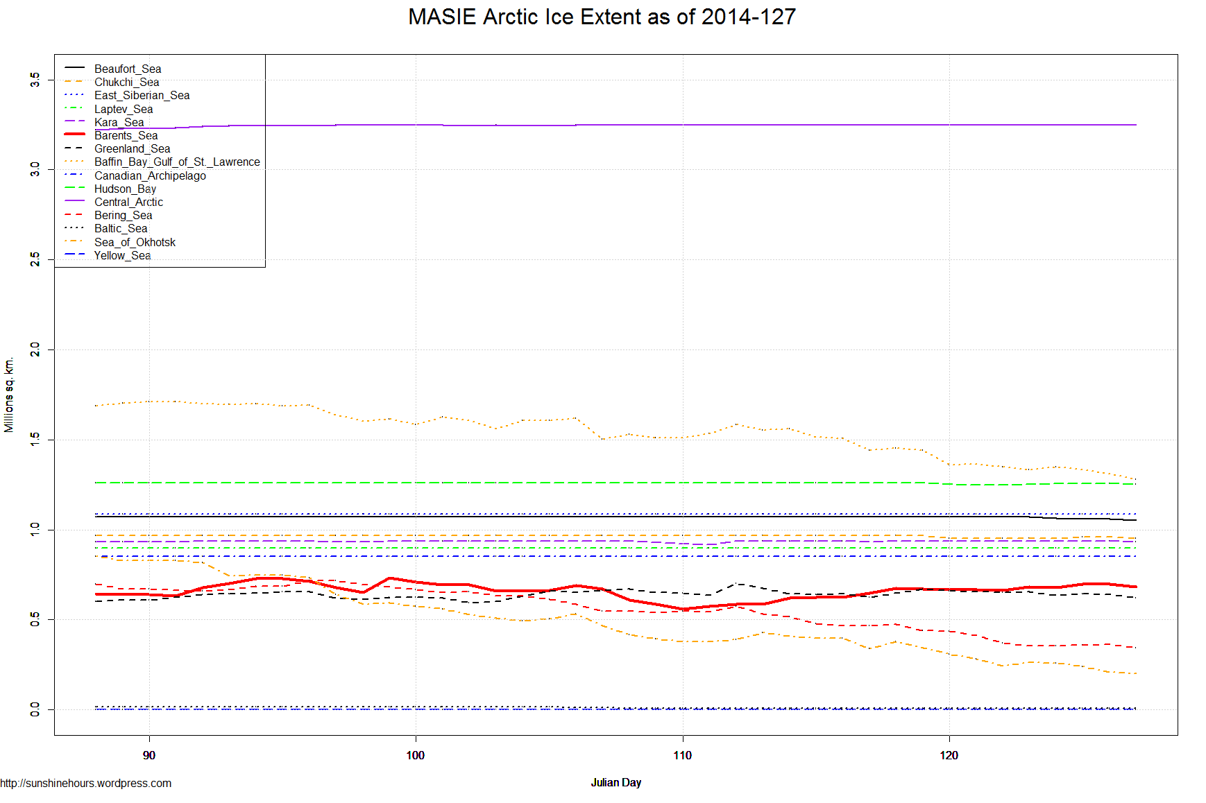 May 8 2014 MASIE Update (Although the dataset from MASIE only has 28 days of data, I have started to save the data allowing the analysis to go further back)