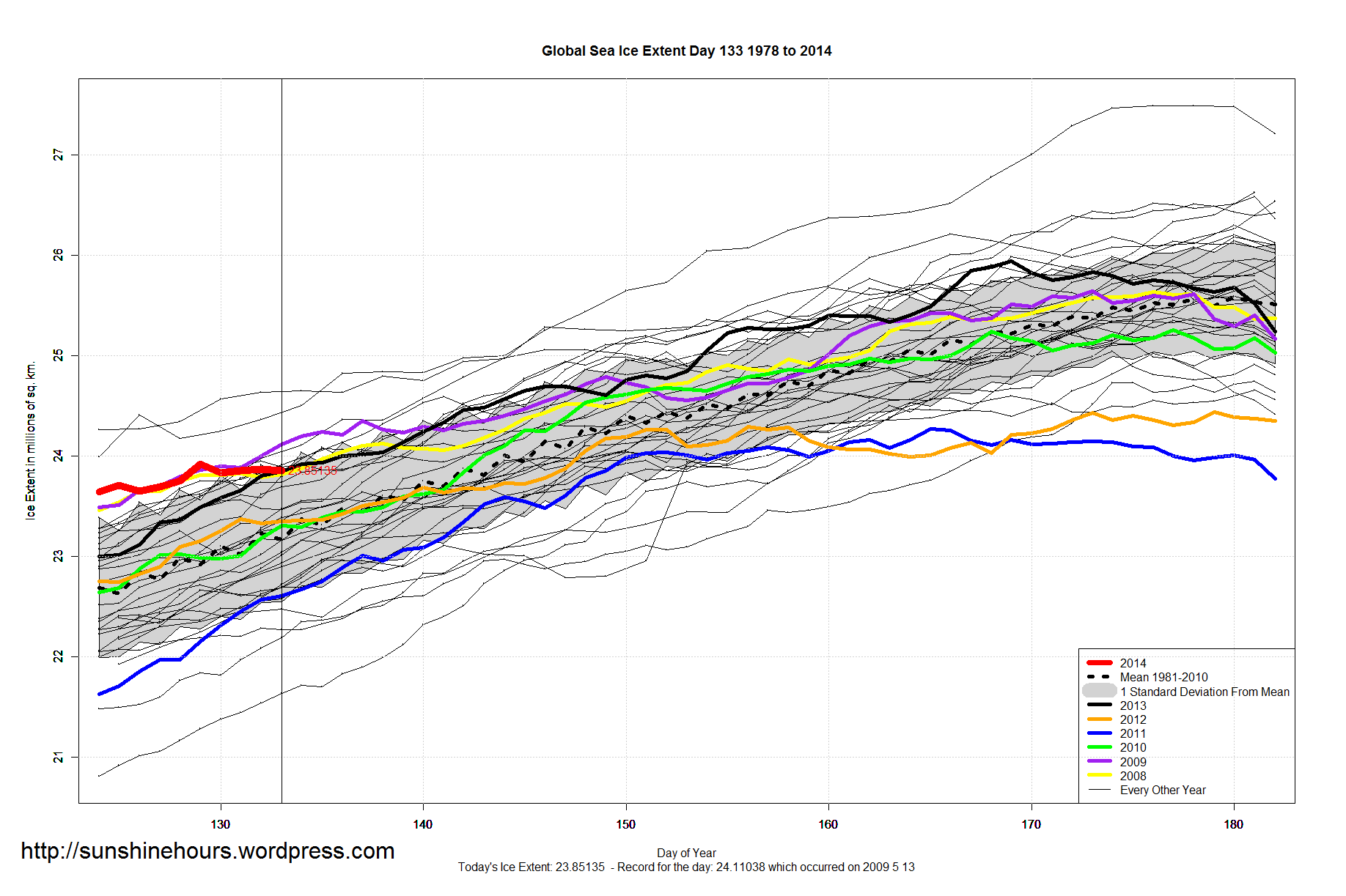 - Global Sea Ice Extent is 606,000 sq km above the 1981-2010 mean. That is ranked 7 for the day.