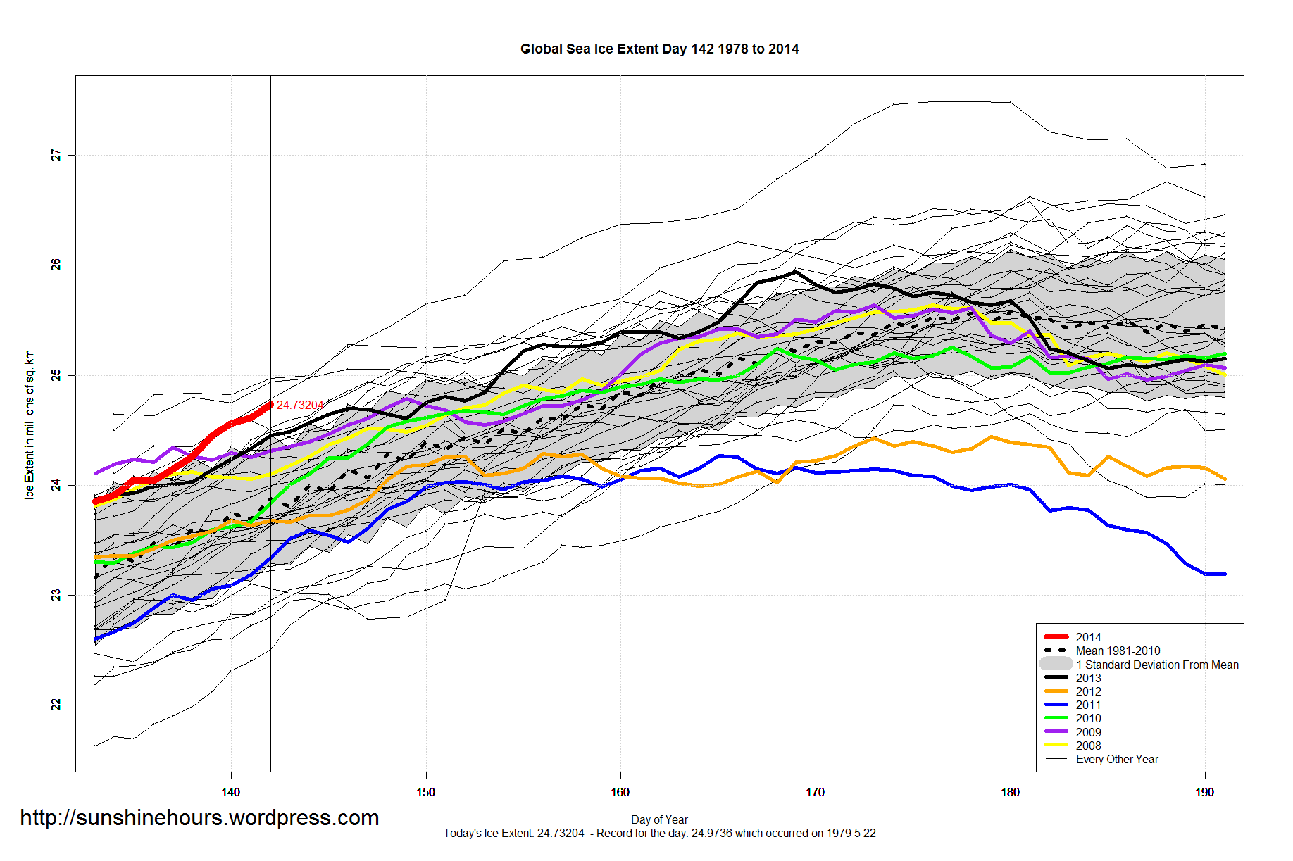 A quick update for sea ice extent for day 142 of 2014: