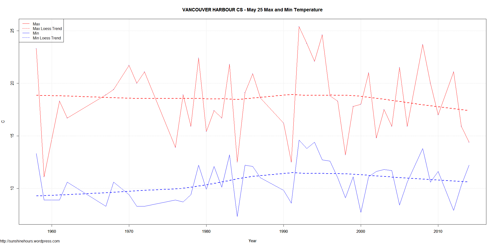 VANCOUVER HARBOUR CS - May 25 Max and Min Temperature