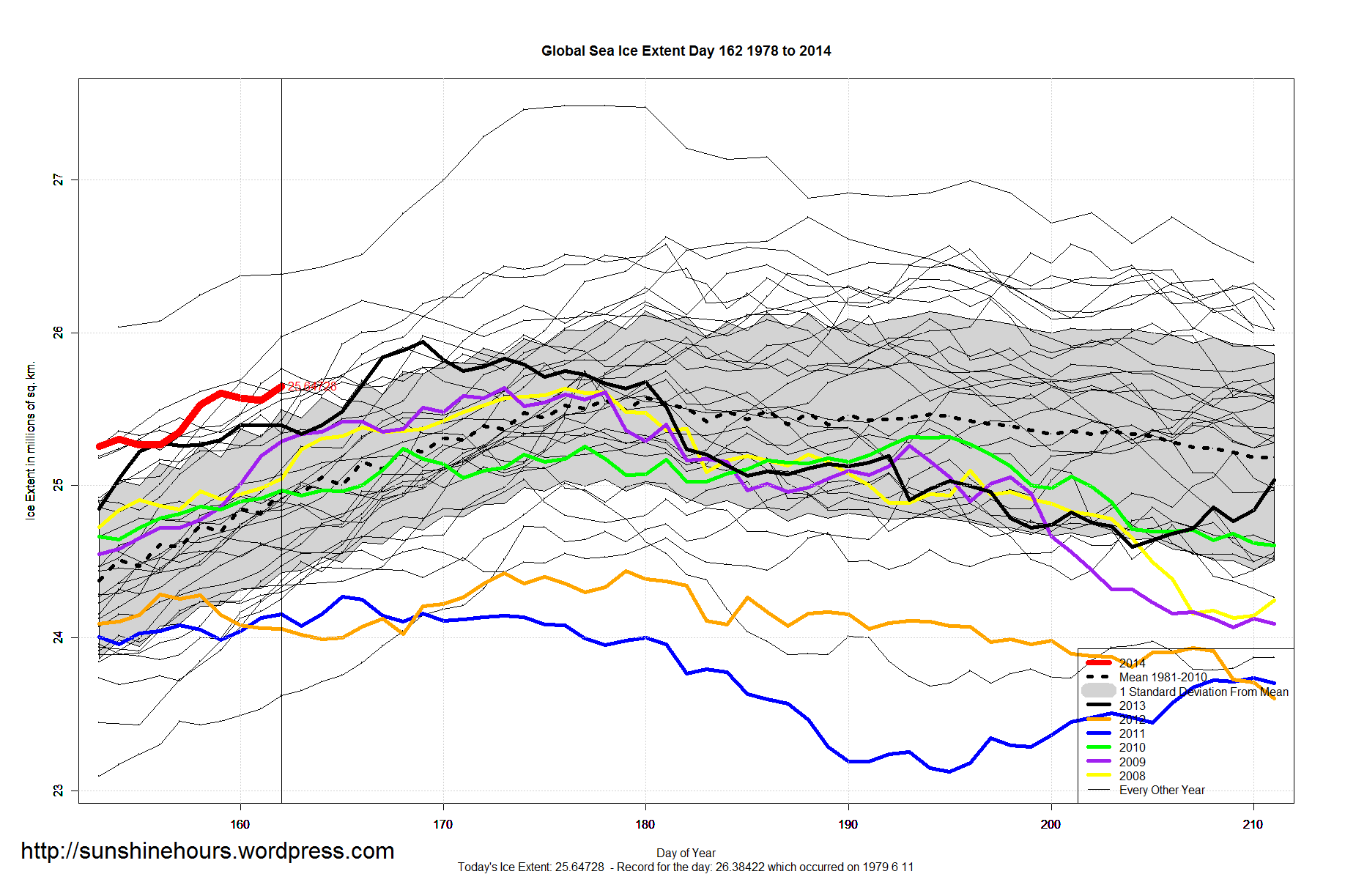- Global Sea Ice Extent is 711,000 sq km above the 1981-2010 mean. That is ranked 5 for the day.