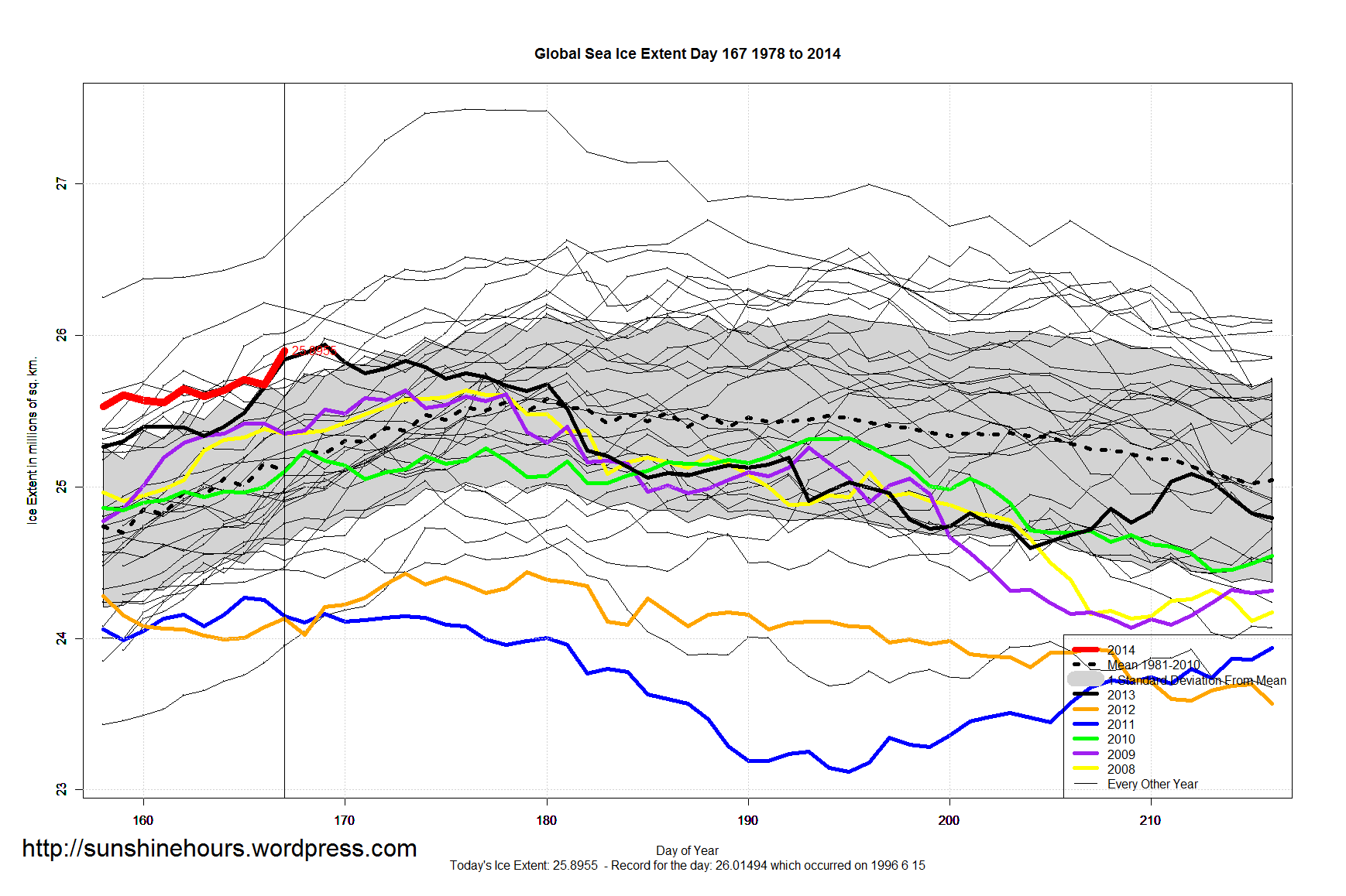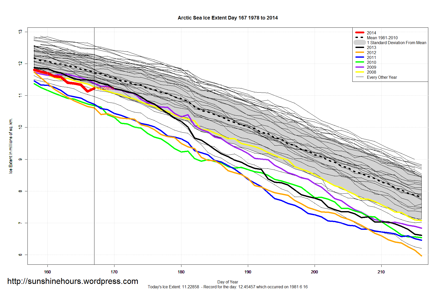 A quick update for sea ice extent for day 167 of 2014