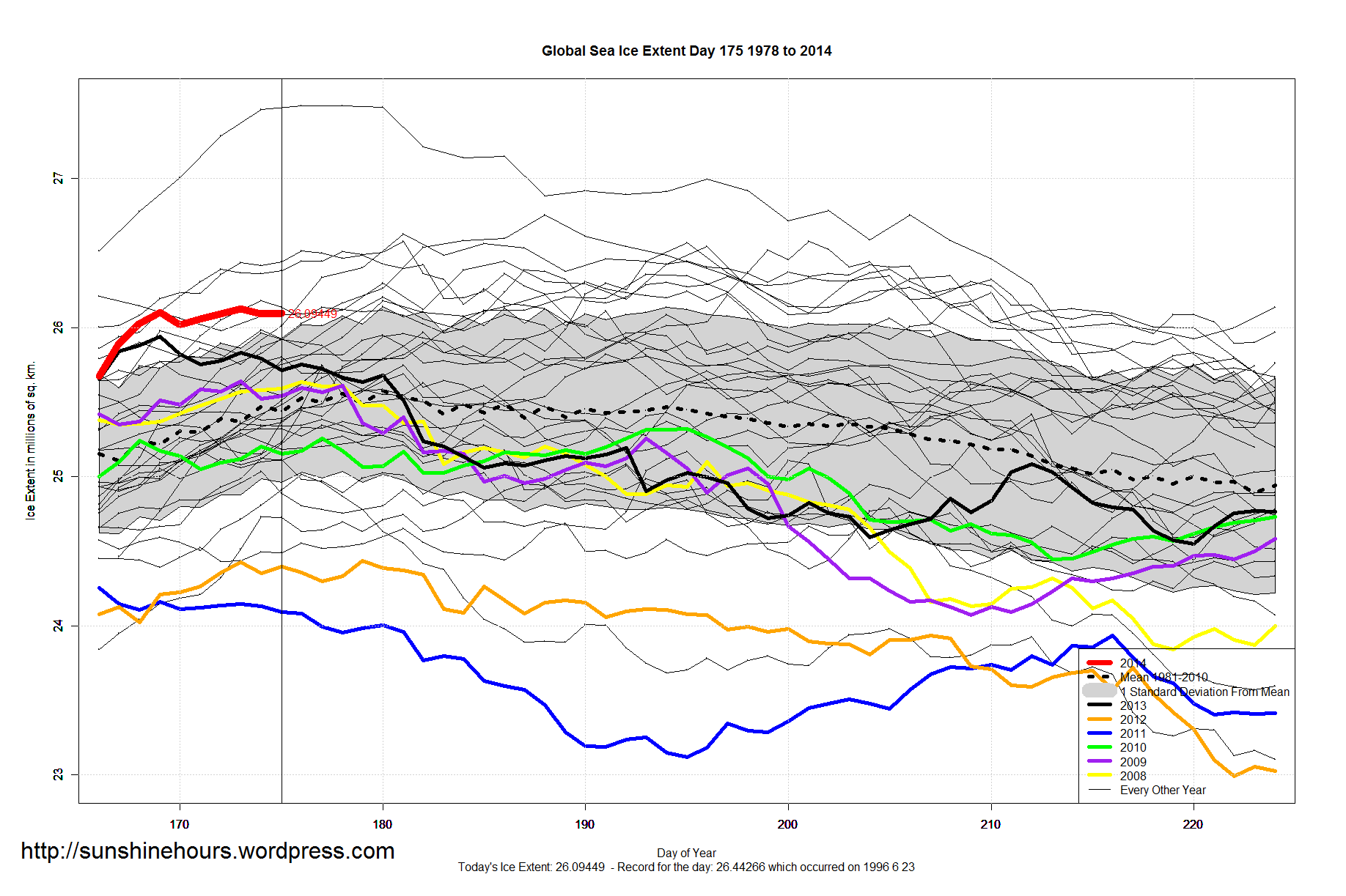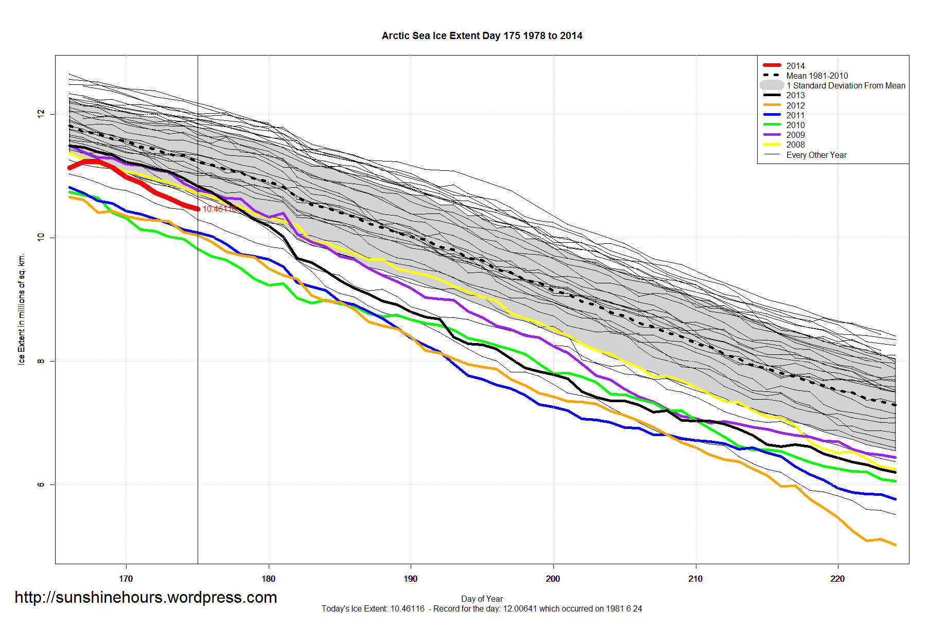 A quick update for sea ice extent for day 175 of 2014