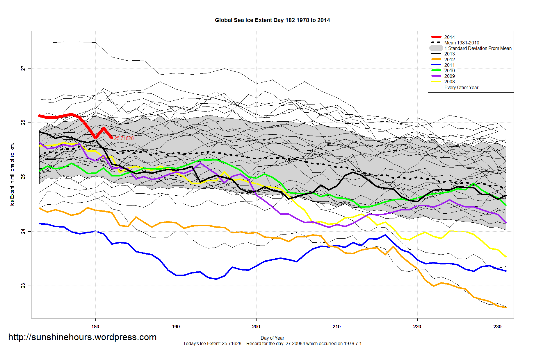 Many AGW true believers dismiss “Global Sea Ice” as an unimportant metric. I’m guessing that in a couple of days it will become important to them.