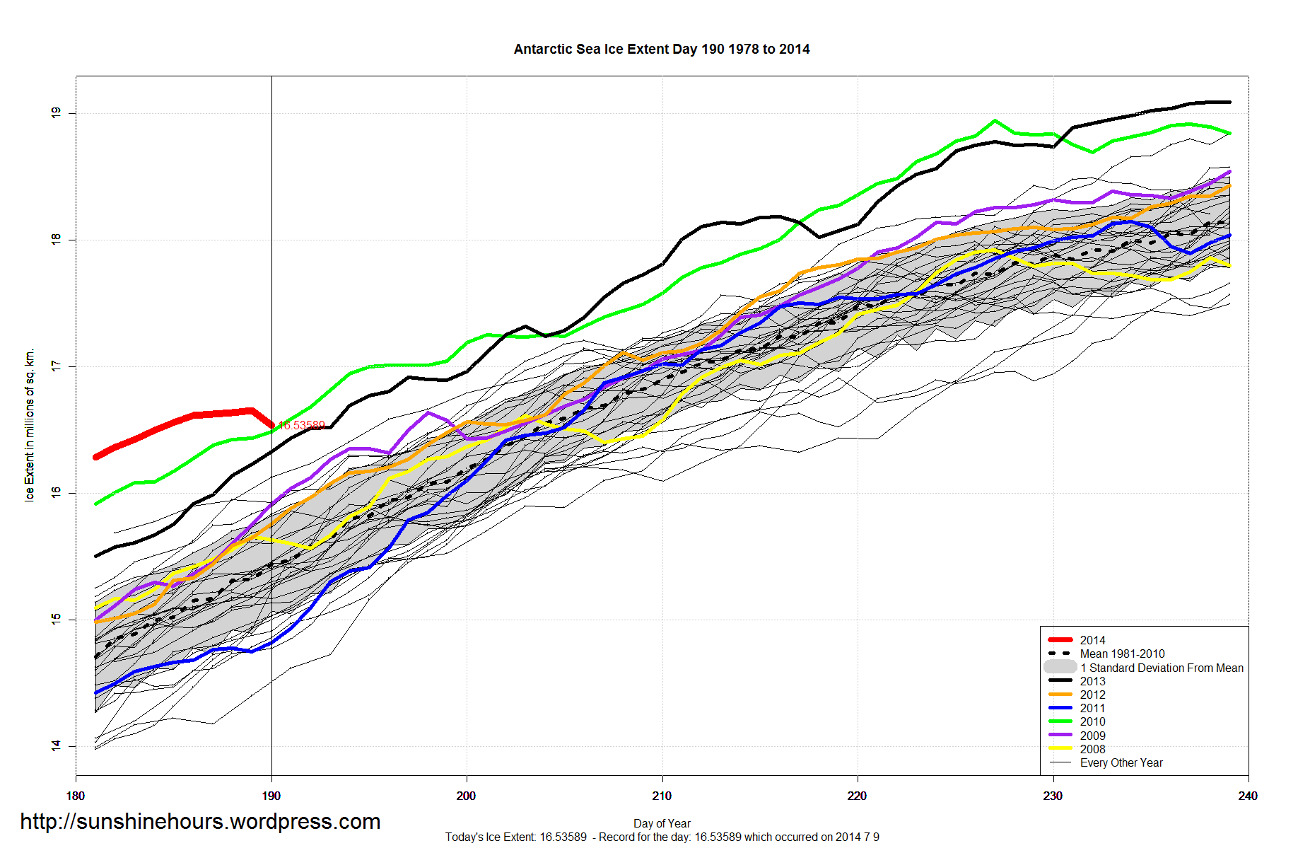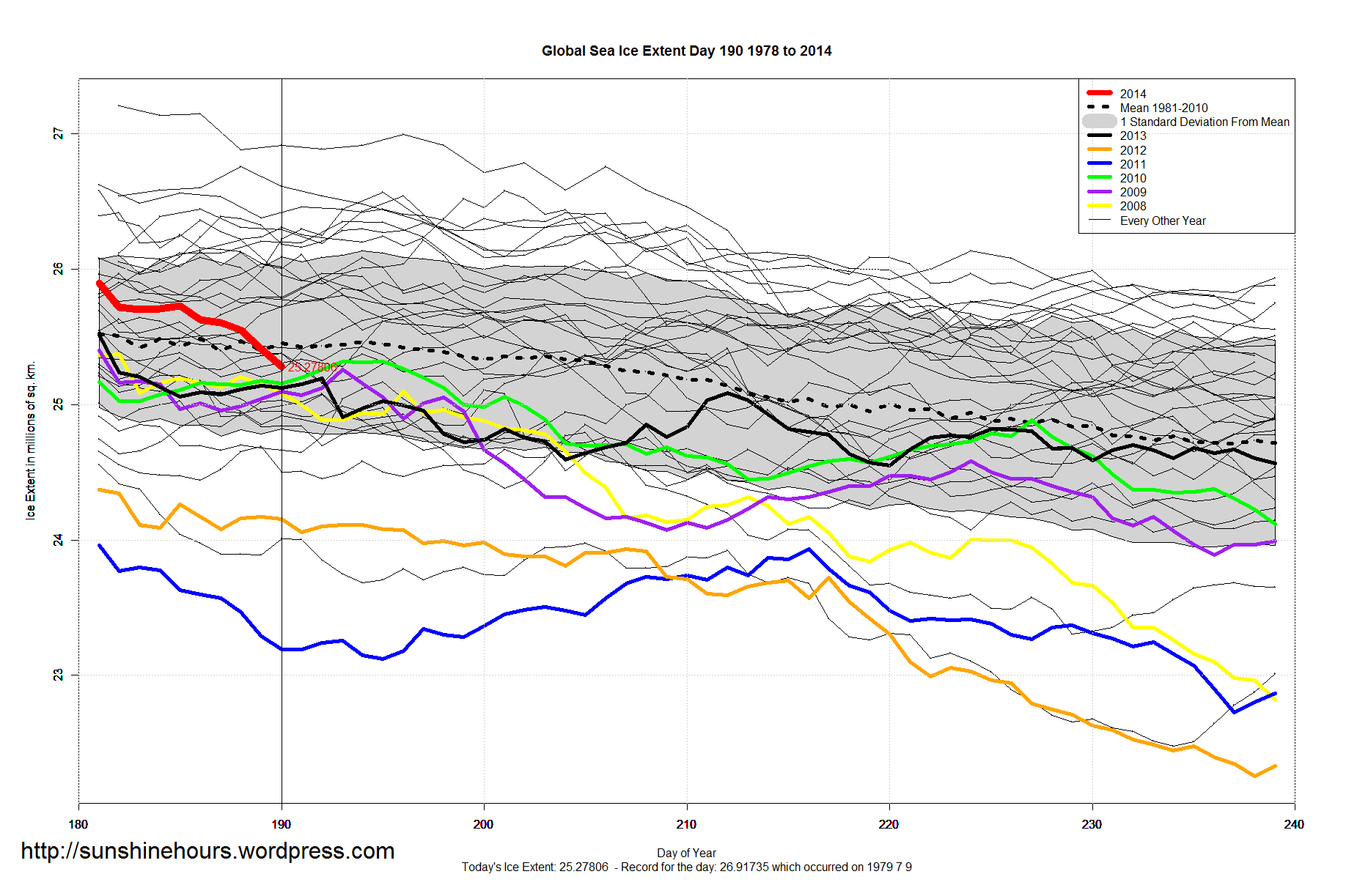 A quick update for sea ice extent for day 190 of 2014