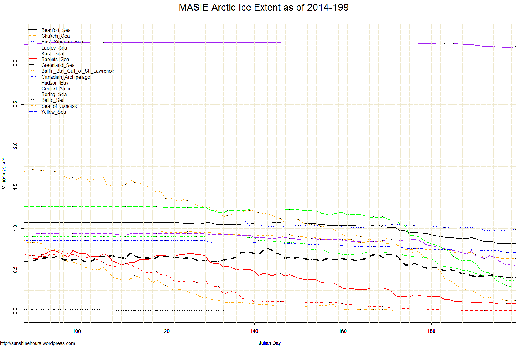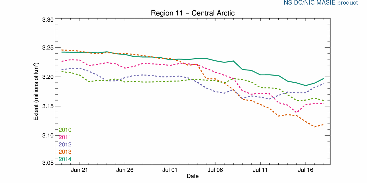 July 19 2014 MASIE Update – Not Much Melting … 3 regions added ice.