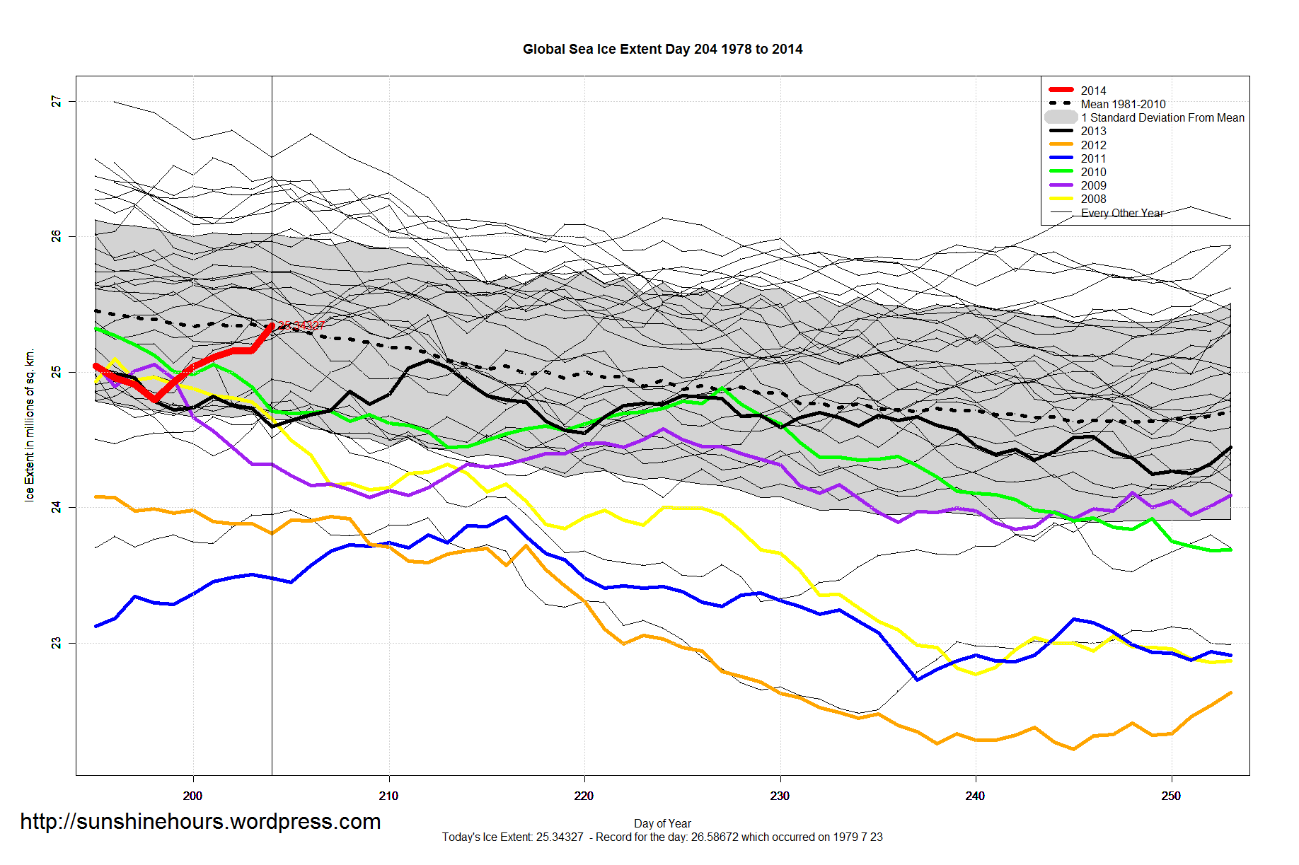 Global Sea Ice Normal July 24 2014 Published on July 24, 2014 by sunshinehours1 Global Sea Ice Update July 24 2014. As “normal” as you can get! Share this: Share on X (Opens in new window) X Share on Facebook (Opens in new window) Facebook Like Loading... Related