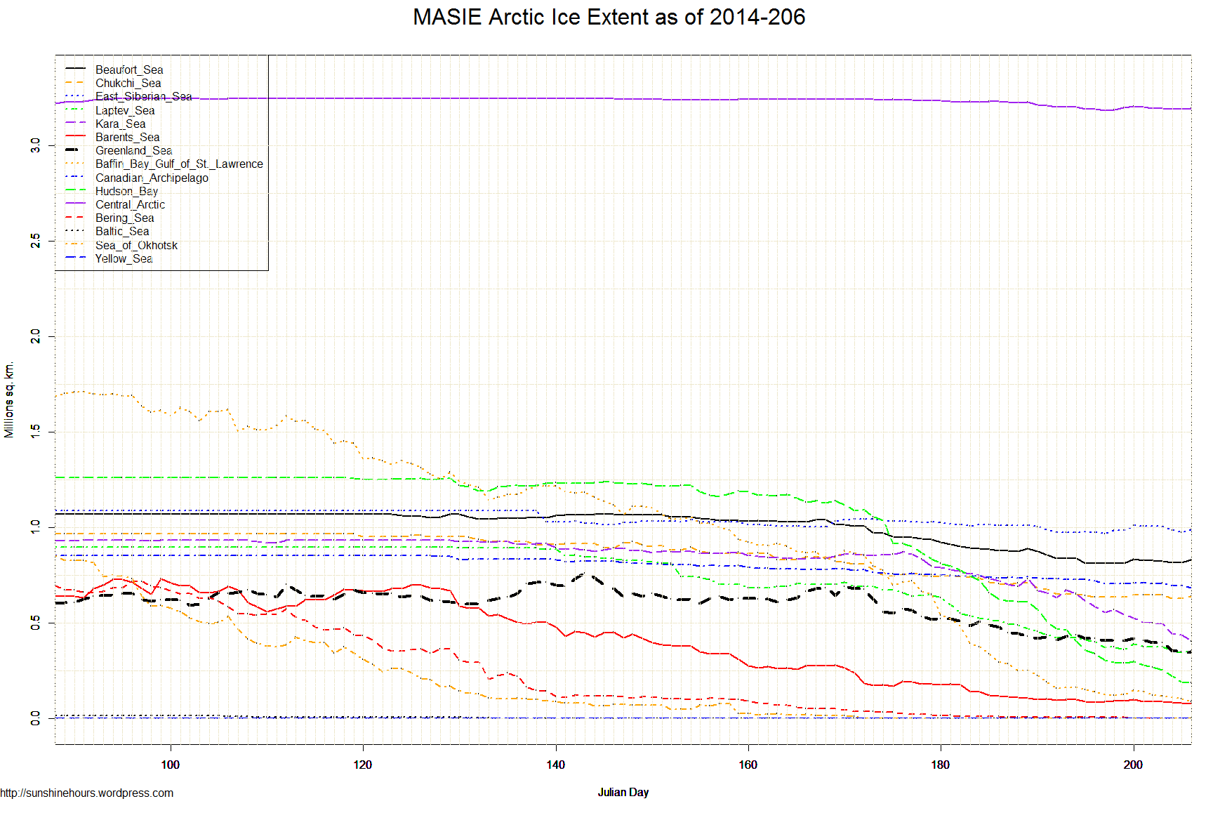 July 26 2014 MASIE Update – Melting and Freezing … resulting in a very small net melt of -10,205 sq km over the last day.