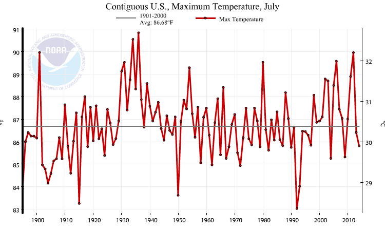 According to the NOAA, July 2014 ranked 29th coldest out of 120 using the Maximum temperature