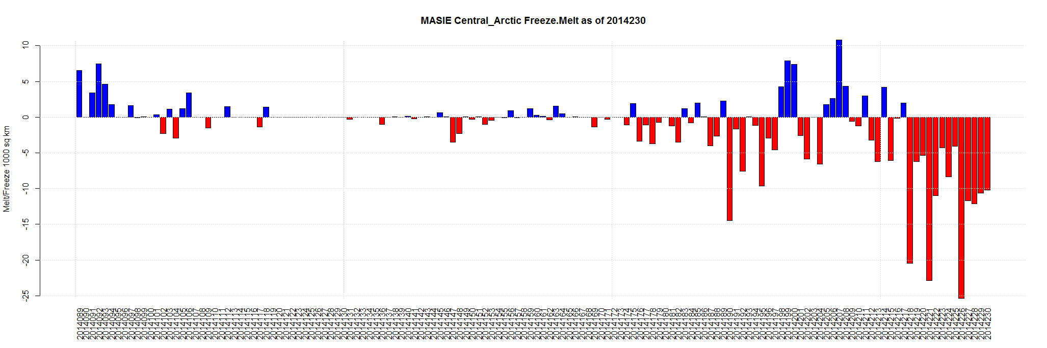 Aug 19 2014 MASIE Update – Steady Melting of 50-90,000 per day… Central Arctic is melting about 10,000 sq km a day.