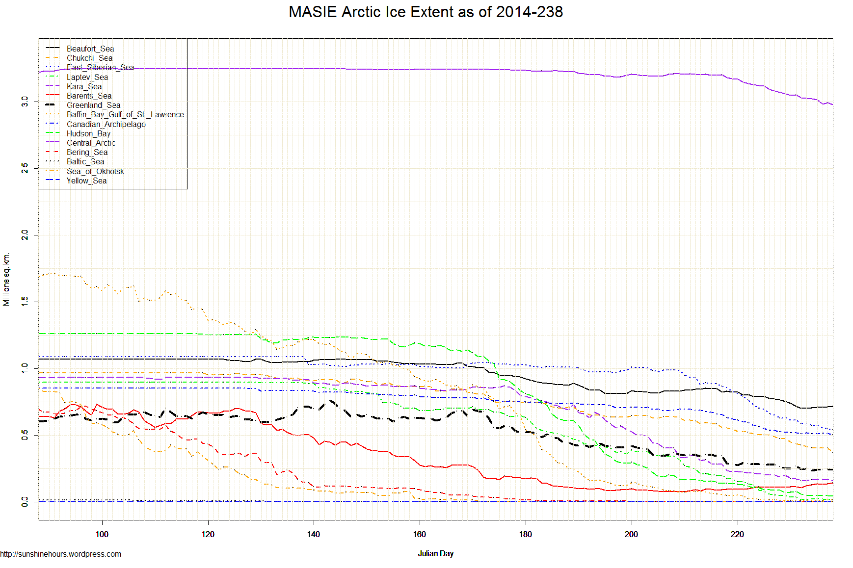 Aug 25 2014 MASIE Update – Smallish Melt – Barents and Beaufort Increase