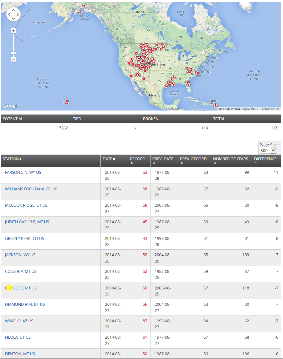 114 Low Max Records Broken and 51 Tied From Aug 25 to Aug 31 according to the NOAA.