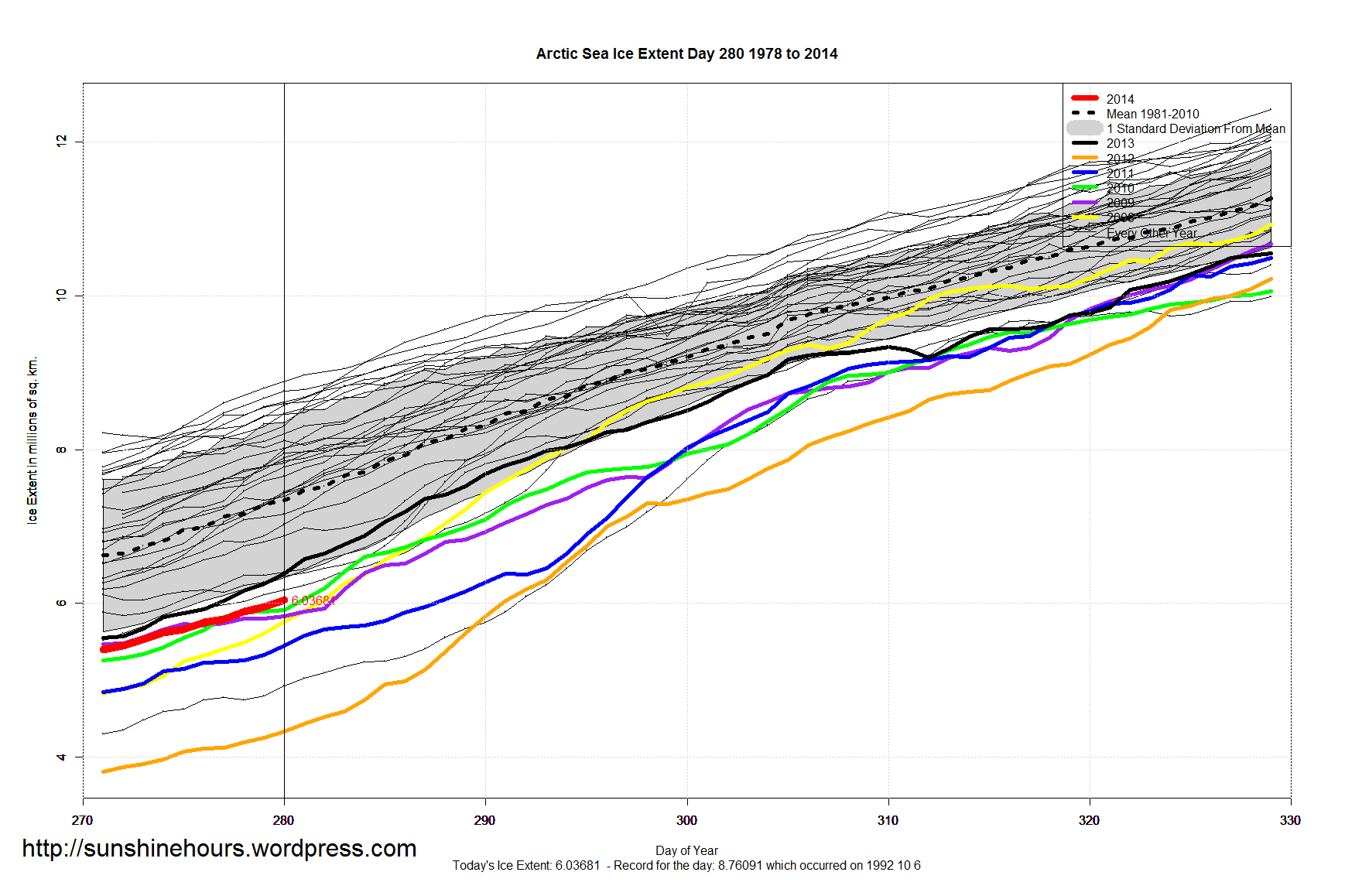 Day 280: MASIE extent grows by 309,000 in the last 2 days to 6.18 M Km2 or 40% of March max.