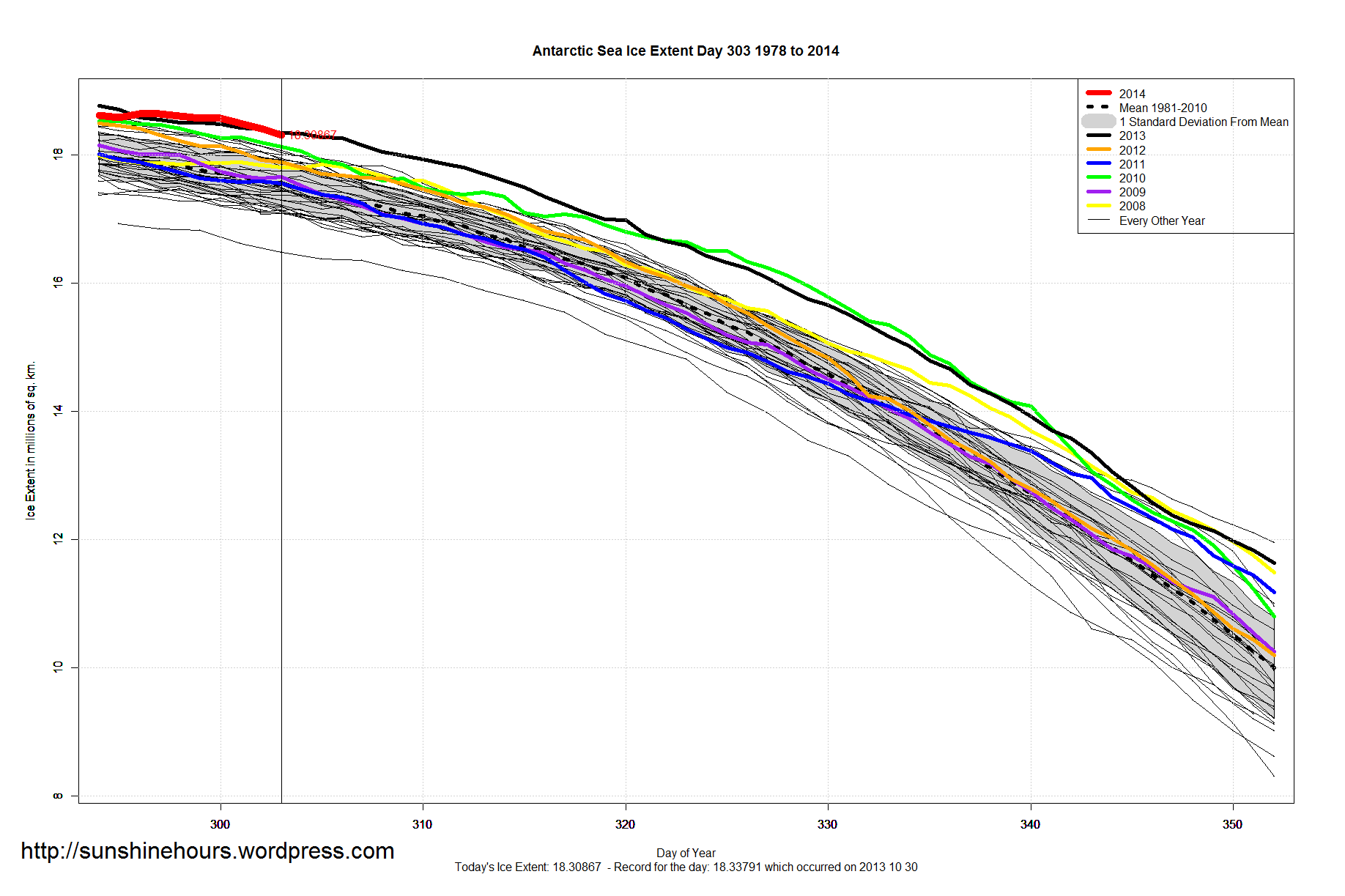 Day 304: In the last 2 days, MASIE extent grew by 230,000 Km2 ito 10.17 M Km2 or 61% of last March max.
