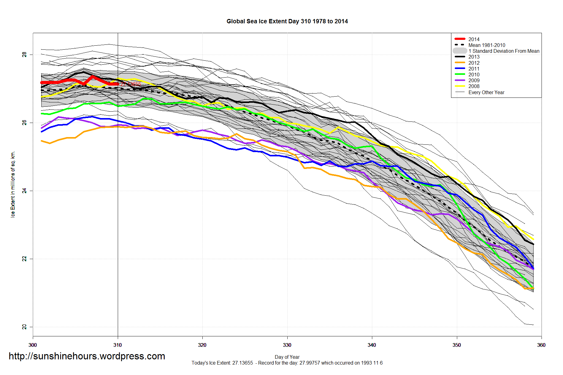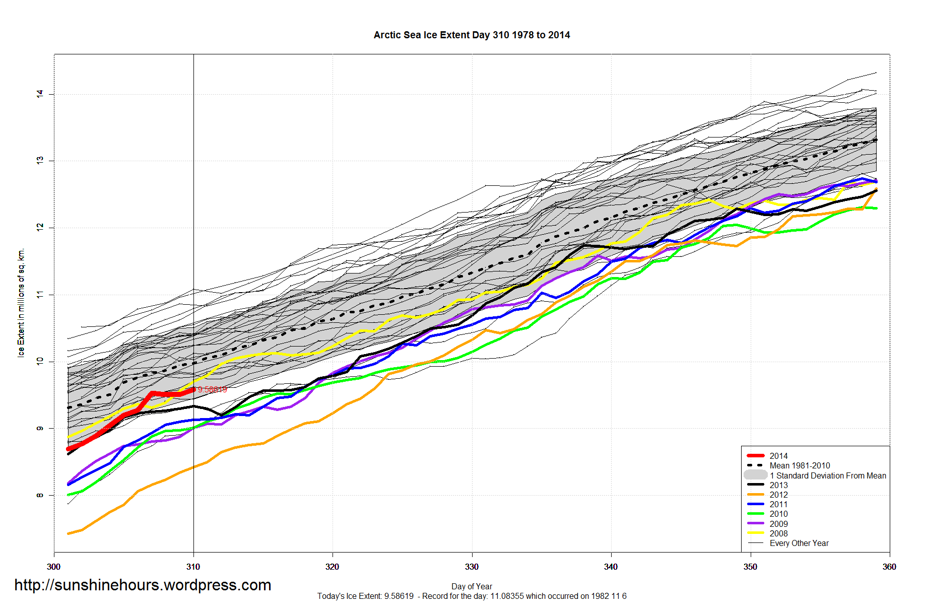 Day 311: In the last four days MASIE extent grew by 230,000 Km2 to 9.89 M Km2 or 62% of last March max.