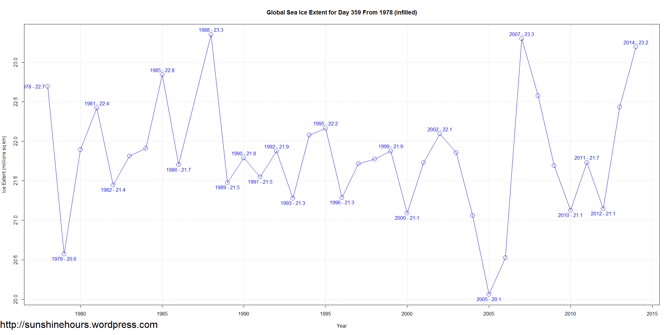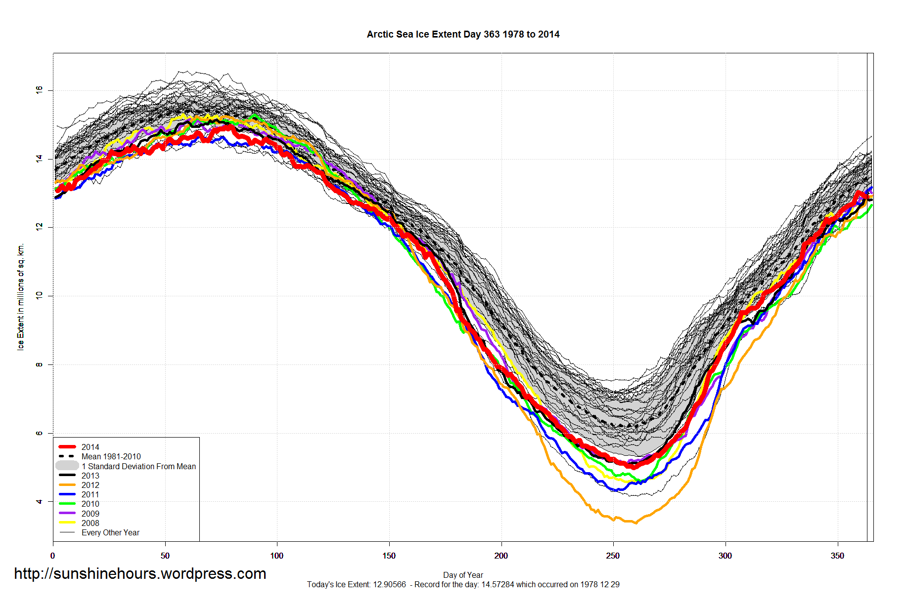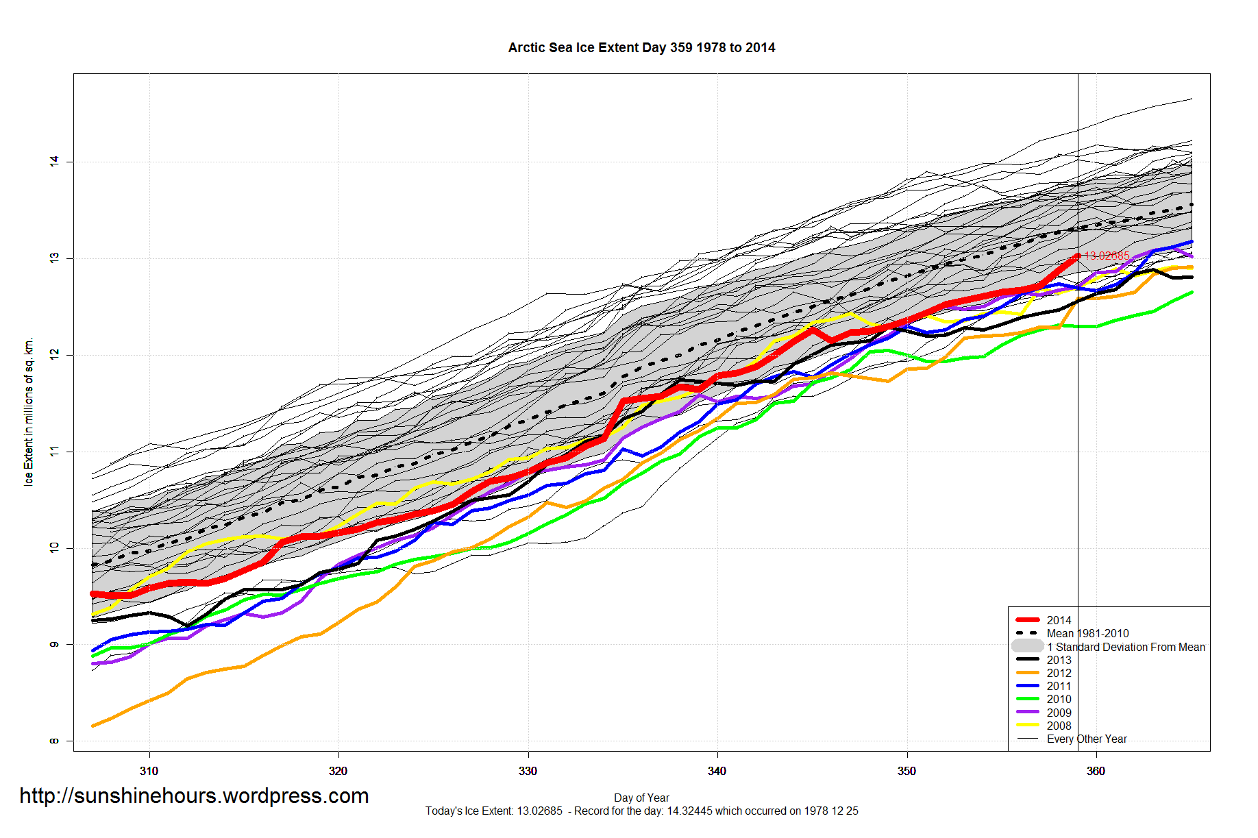 Sea Ice Extent – Day 359 – 3rd Highest – Only 100,000 sq km Short of Daily Record