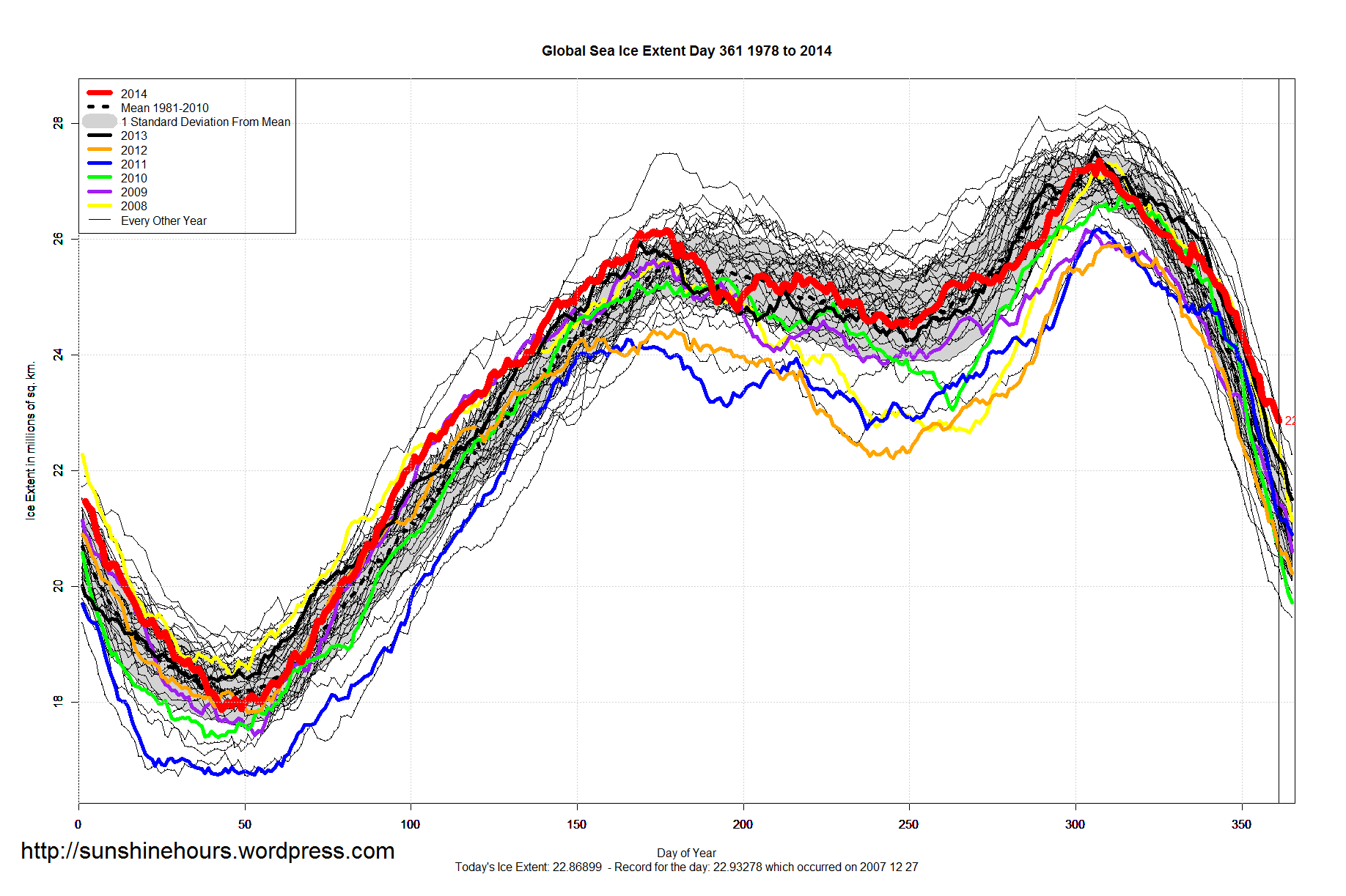 Sea Ice Extent – Day 361- Global Sea Ice 2nd Highest For The Day