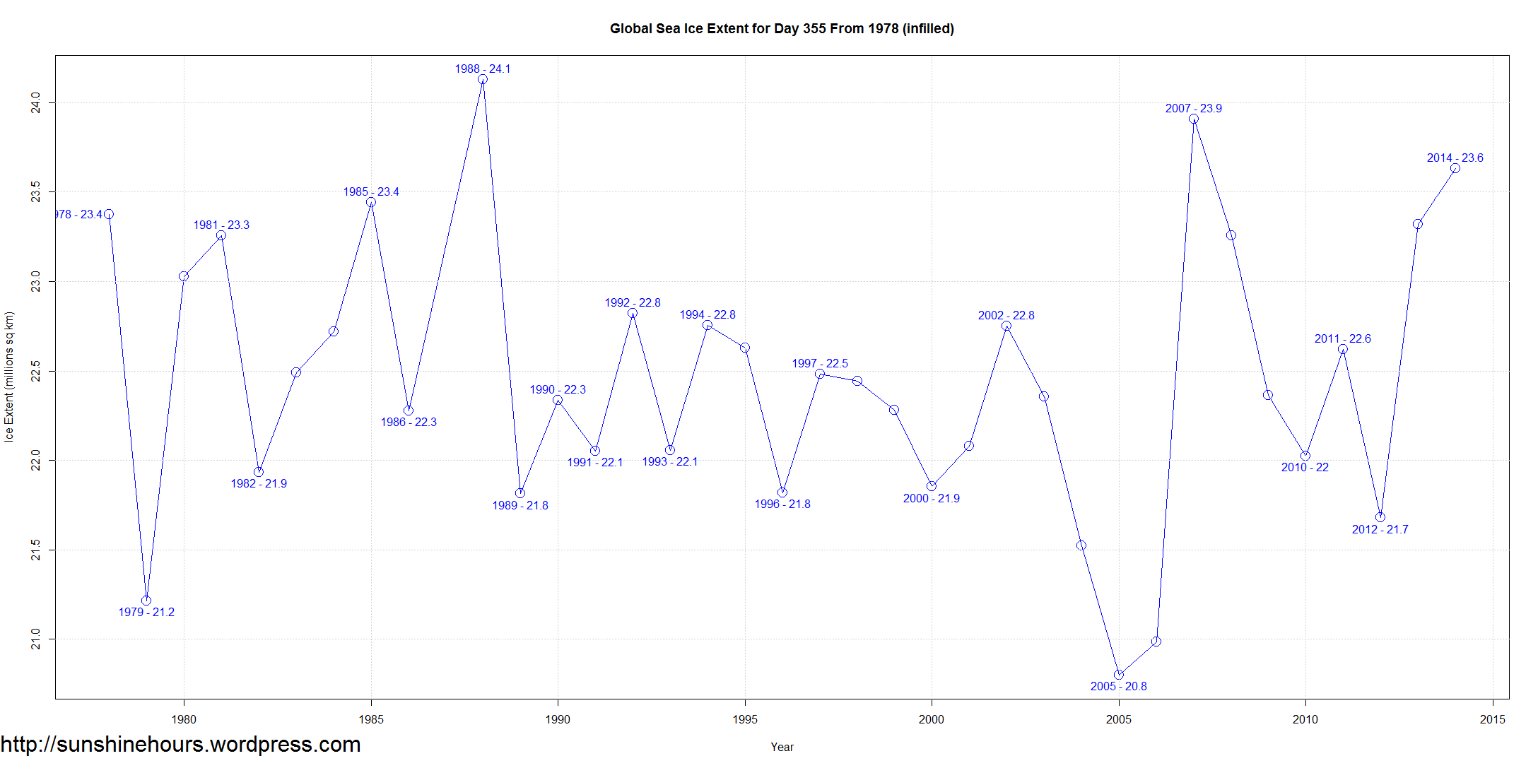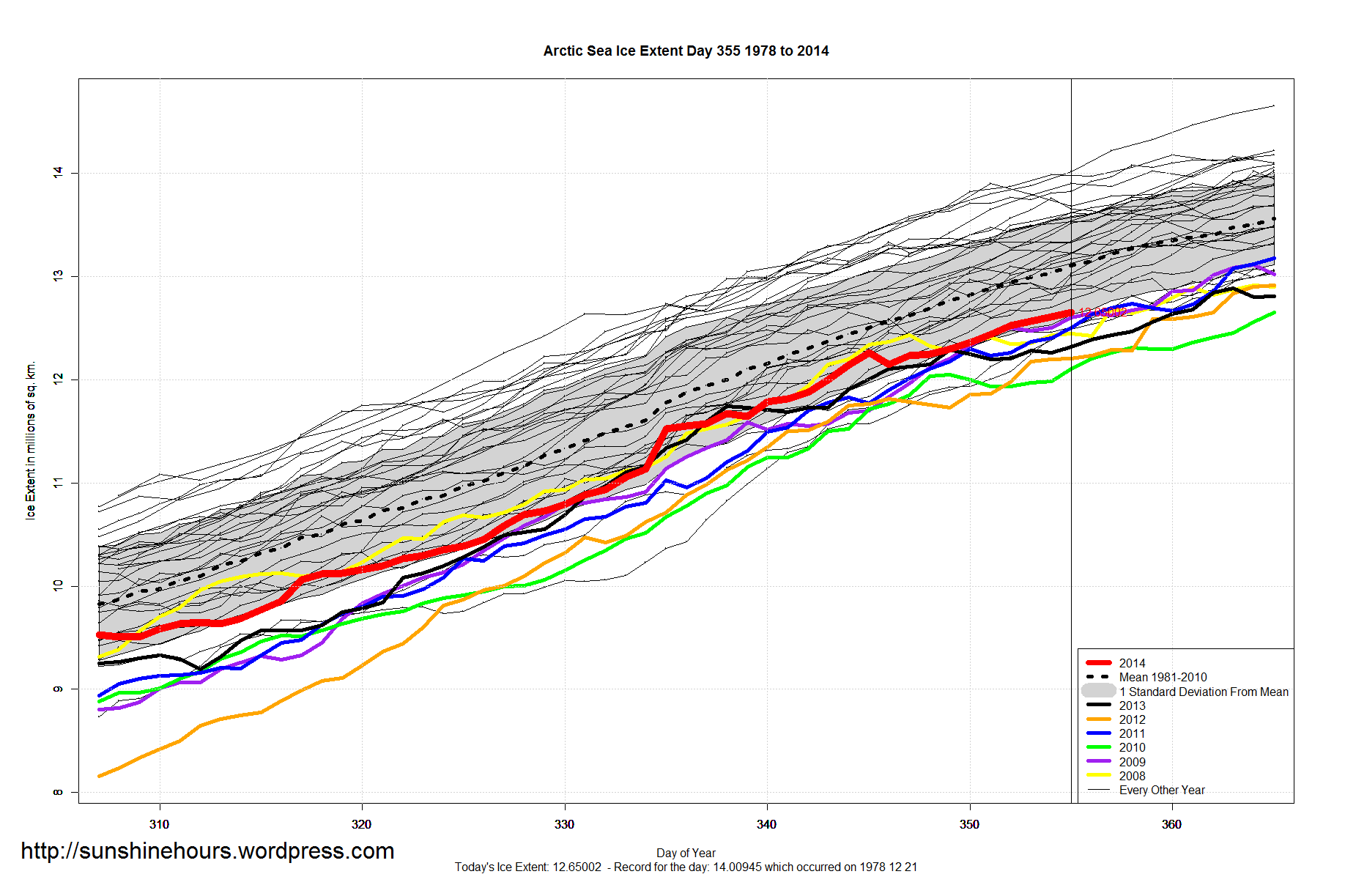 Sea Ice Extent – Day 355- 3rd Highest Global Sea Ice For The Day Published on December 22, 2014 by sunshinehours1 Share this: Click to share on X (Opens in new window) X Click to share on Facebook (Opens in new window) Facebook Like Loading... Related