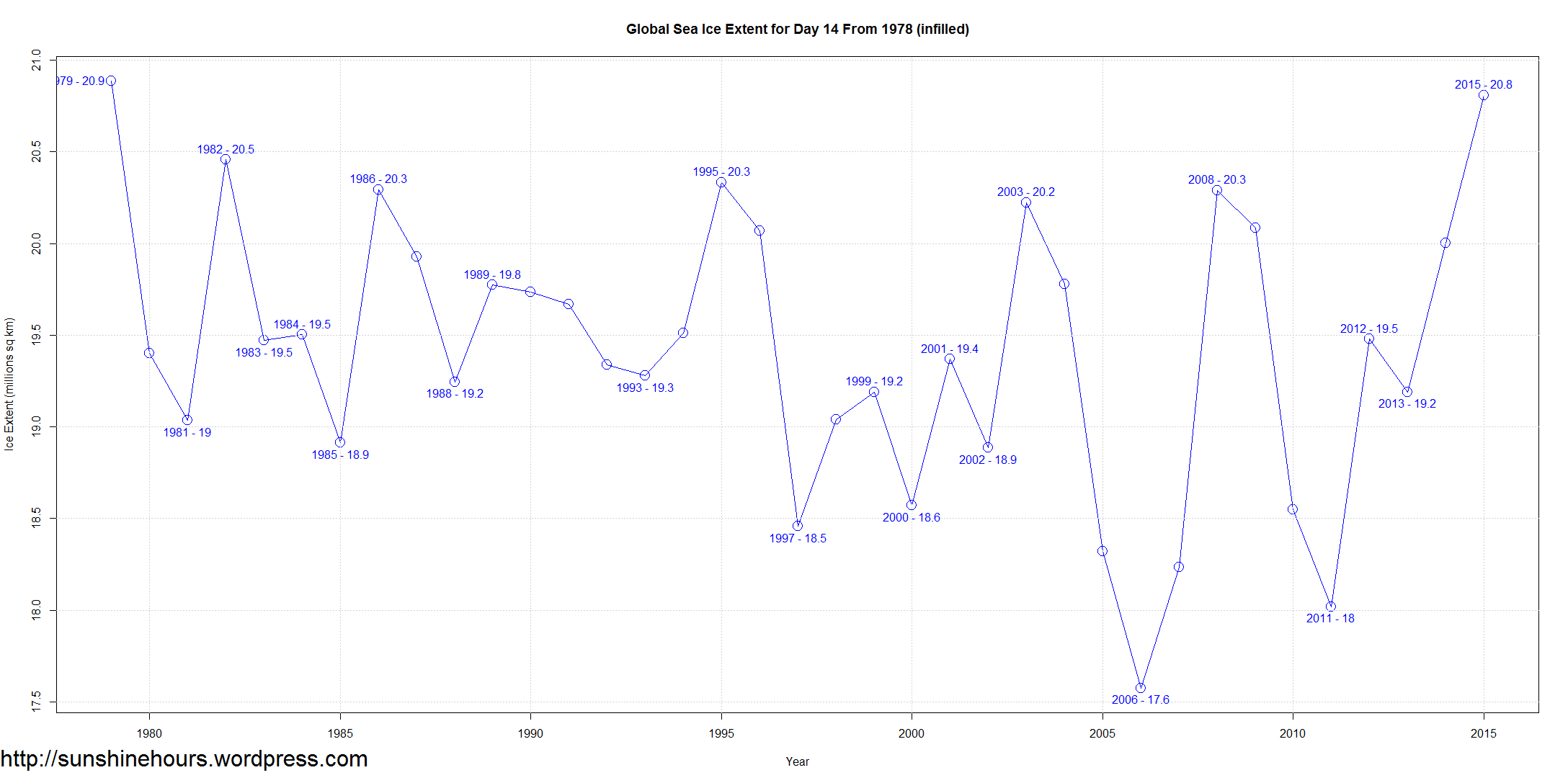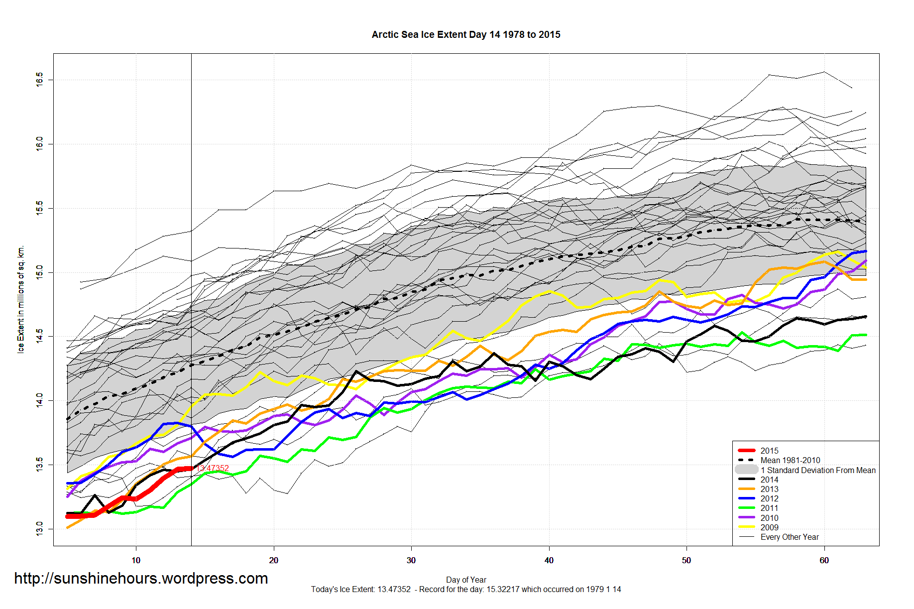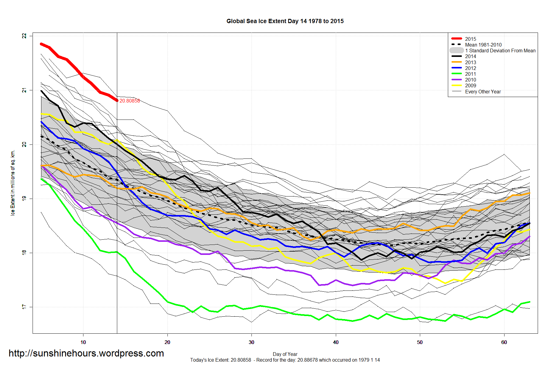 Global Sea Ice was above 2 STD for 13 out of 14 days of 2015.