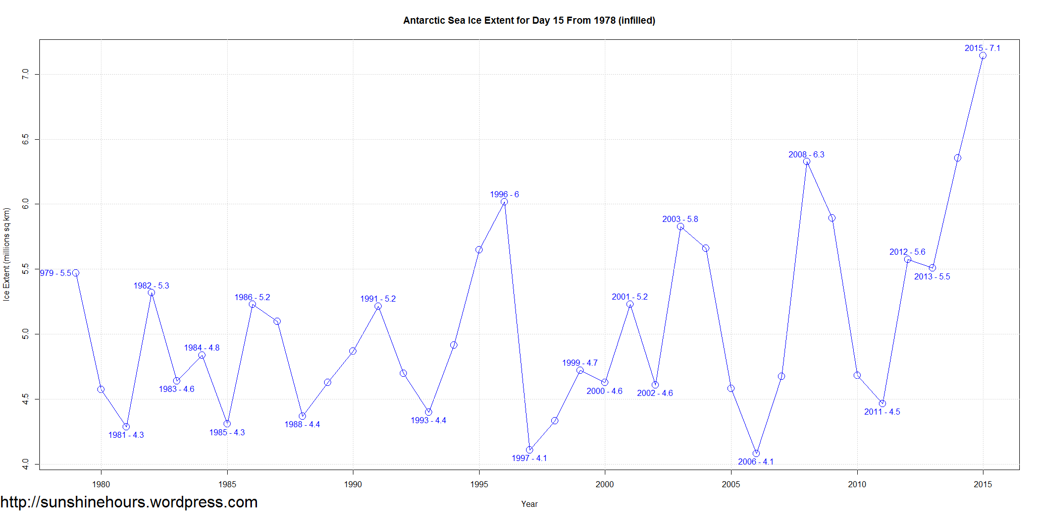 15 daily records in a row in 2015 for Antarctica. Antarctic Sea Ice Extent Breaks Daily Record By Almost 800,000 sq km.