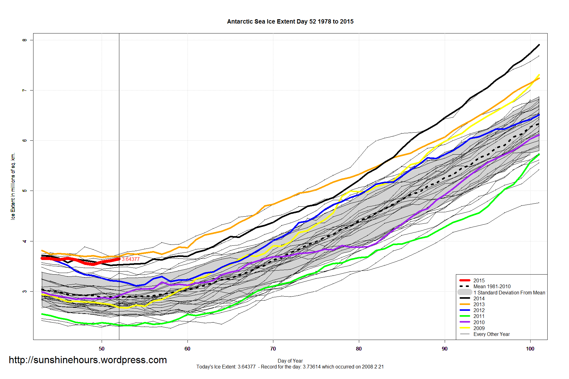One thought on “Sea Ice Extent – Day 52 – Antarctica – 2015 Probably Is 4th Highest Minimum”