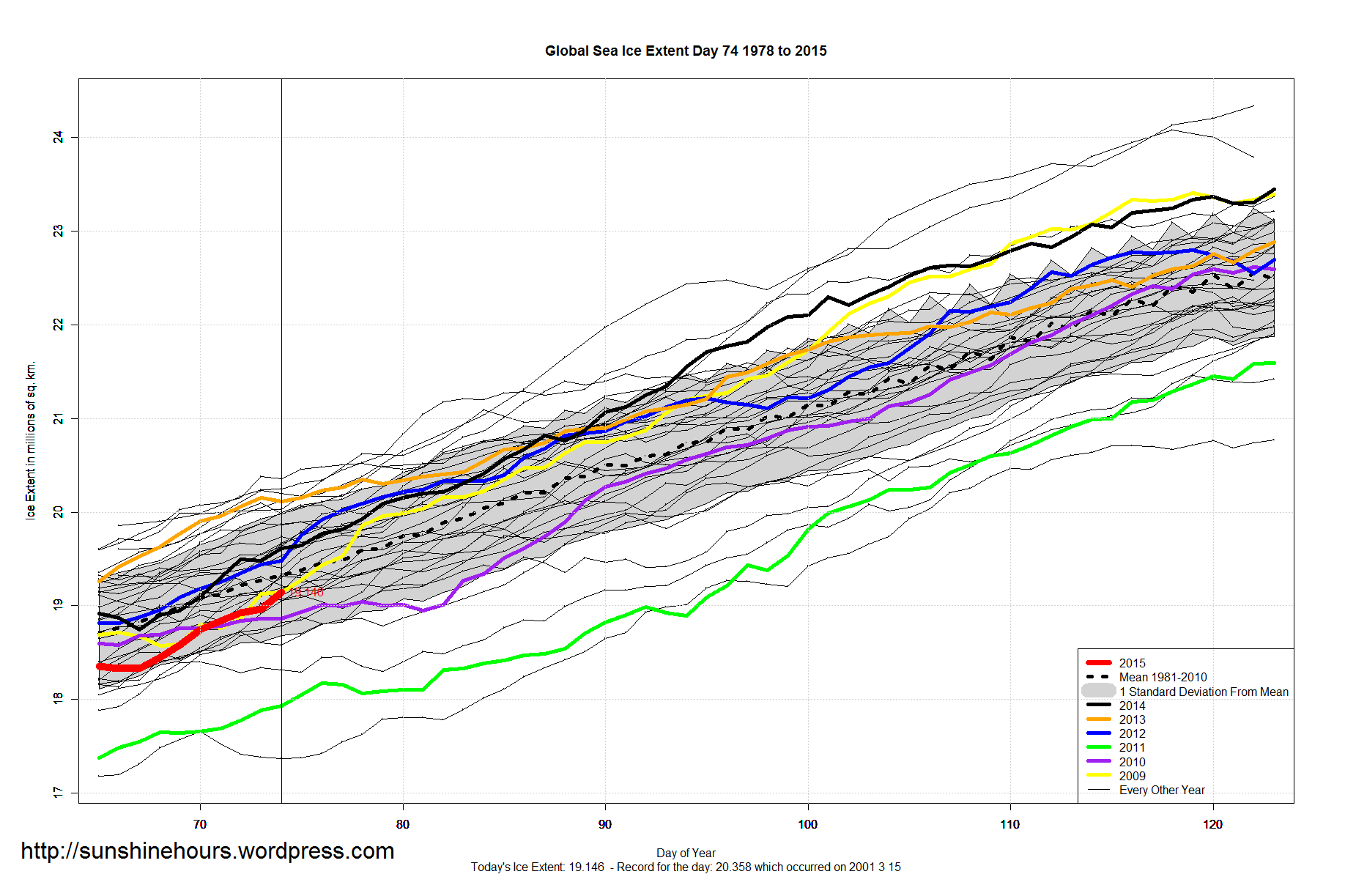 One thought on “Sea Ice Extent – Day 74 – Global Sea Ice Identical To 1981”