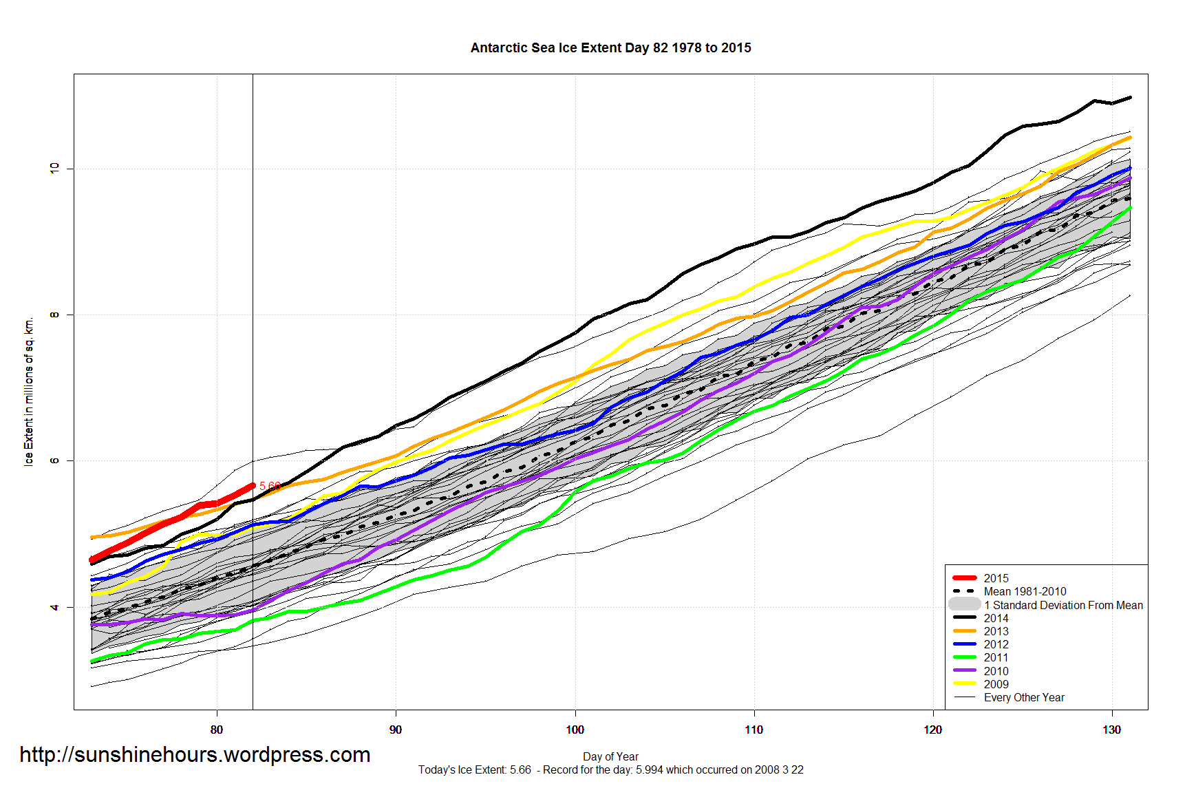 7 thoughts on “Sea Ice Extent – Day 82 – Global Sea Ice Above ‘Normal’