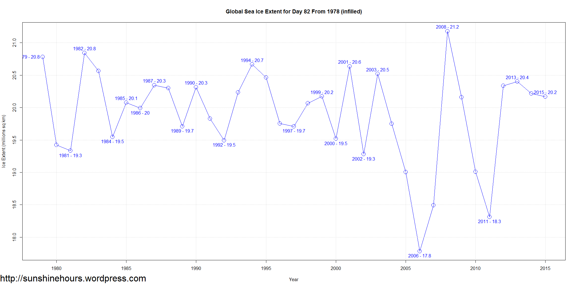 Global Sea Ice Extent for Day 82 From 1978 (infilled)