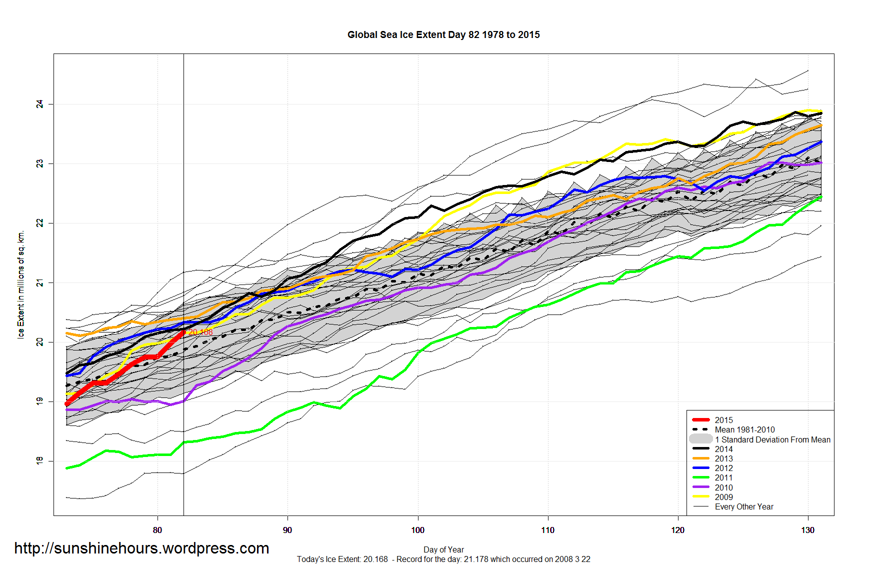 Sea Ice Extent – Day 82 – Global Sea Ice Above ‘Normal’