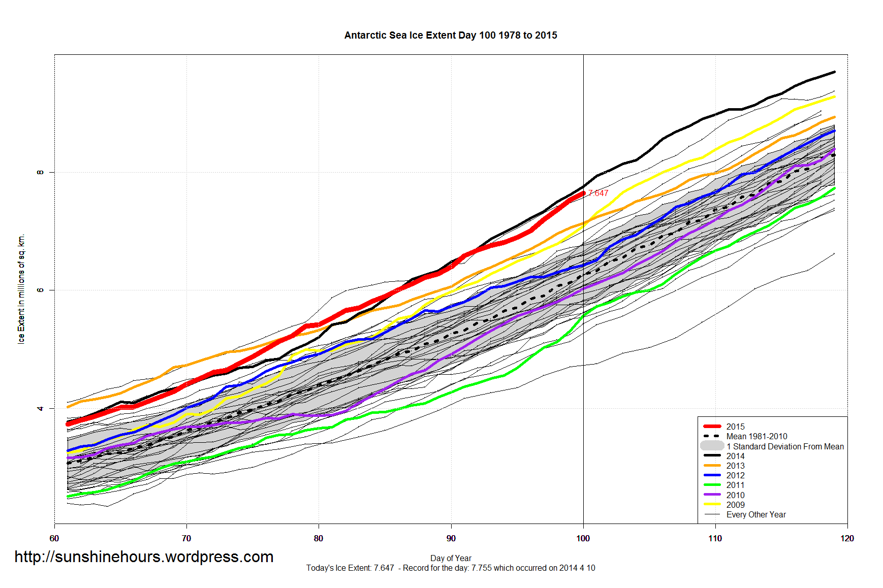 Sea Ice Extent – Day 100 – 7th Highest Global Sea Ice For This Day – Antarctic 1.4 million above ‘Normal’