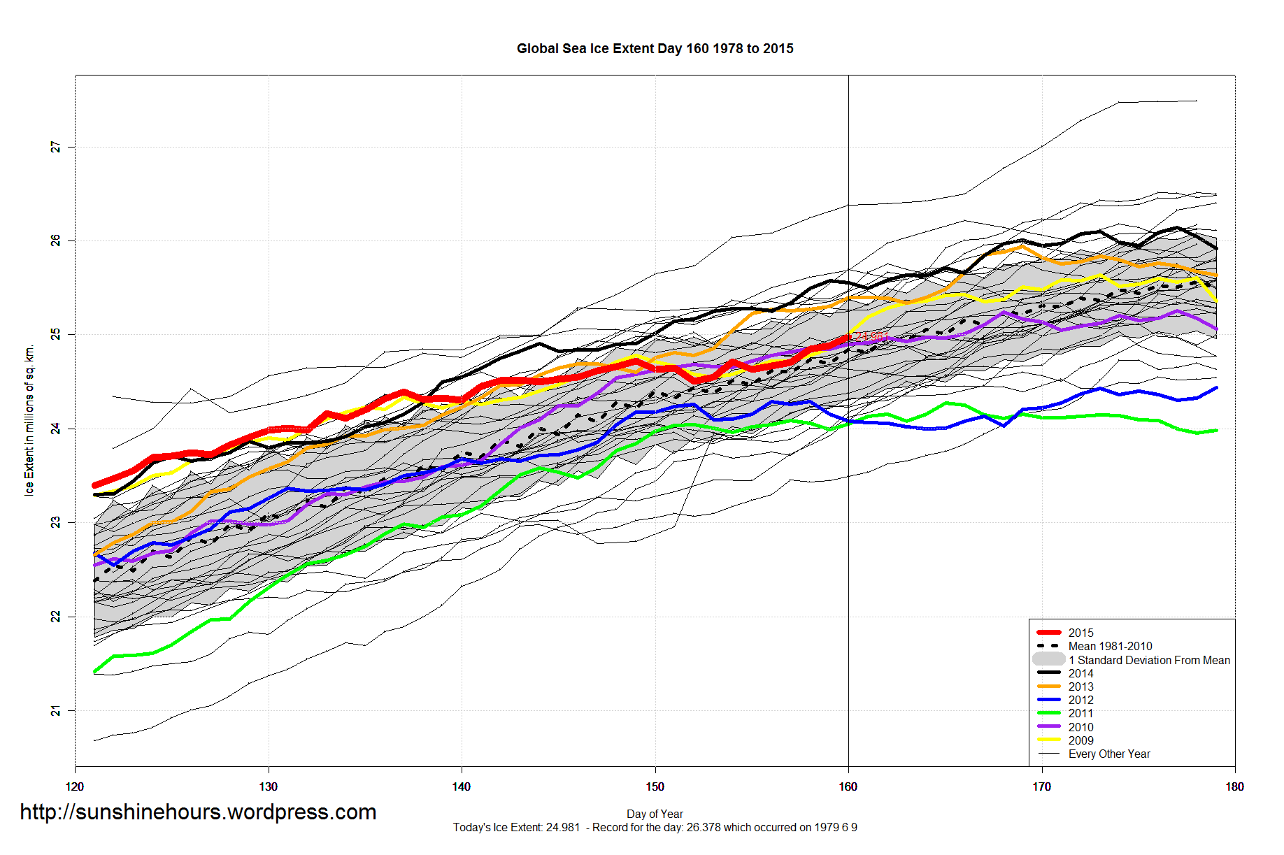 Arctic no longer a record low for the day. So far 45 days in 2015 have been record lows. 2006 has 79 record lows. 2012 has 127.