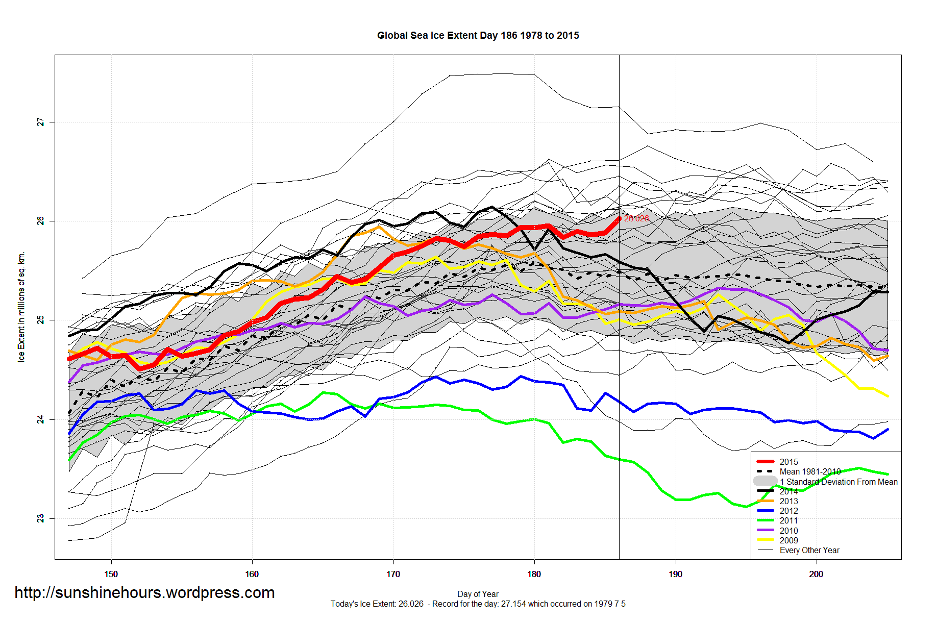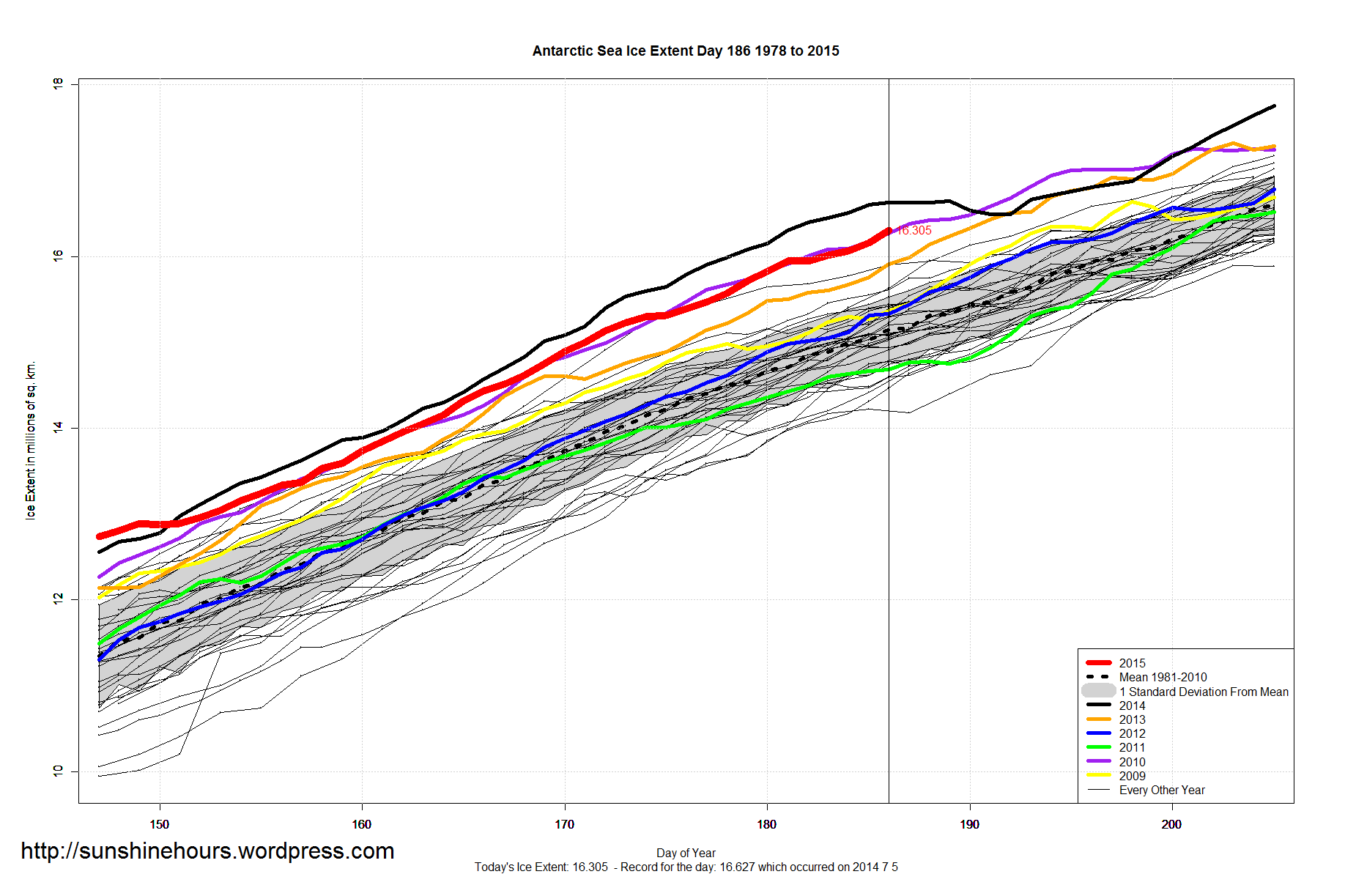 3 thoughts on “Sea Ice Extent – Day 186 – Arctic within 1 STD – Antarctic 2nd Highest – Global 11th Highest For This Day