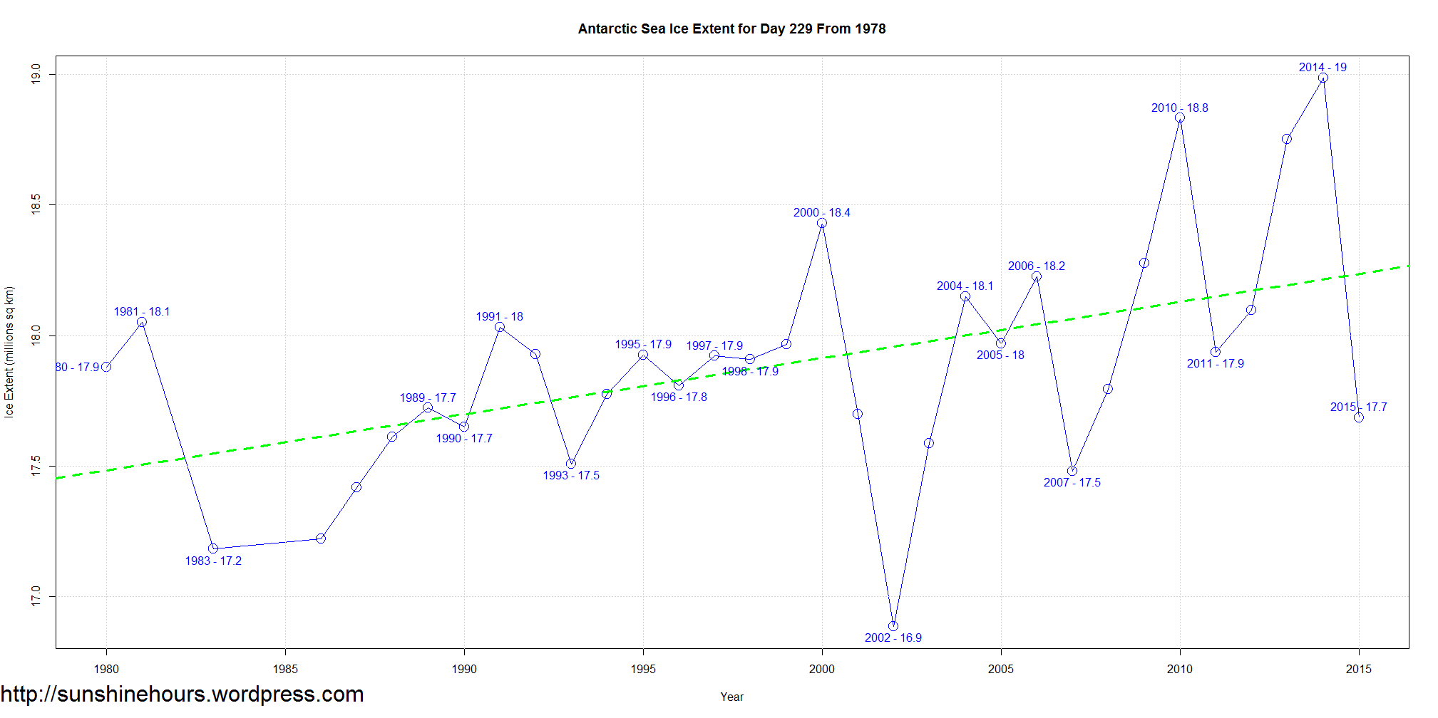 Antarctic Sea Ice Extent for Day 229 From 1978