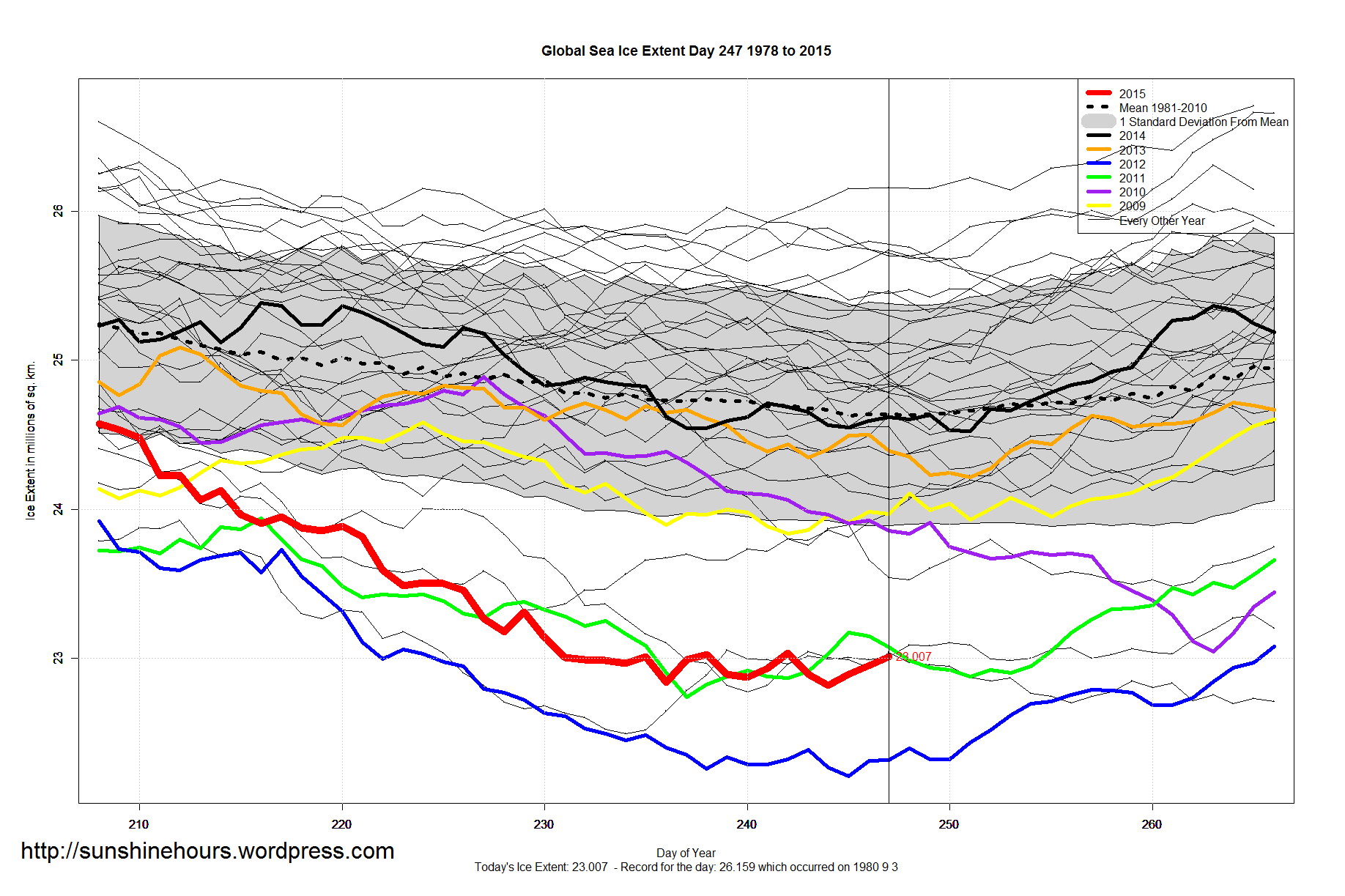 If so that would be the earliest minimum ever. Interestingly (if it holds true) Arctic max was on day 53. The earliest was day 52.