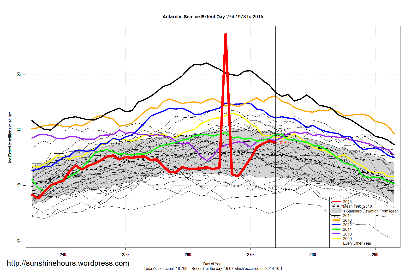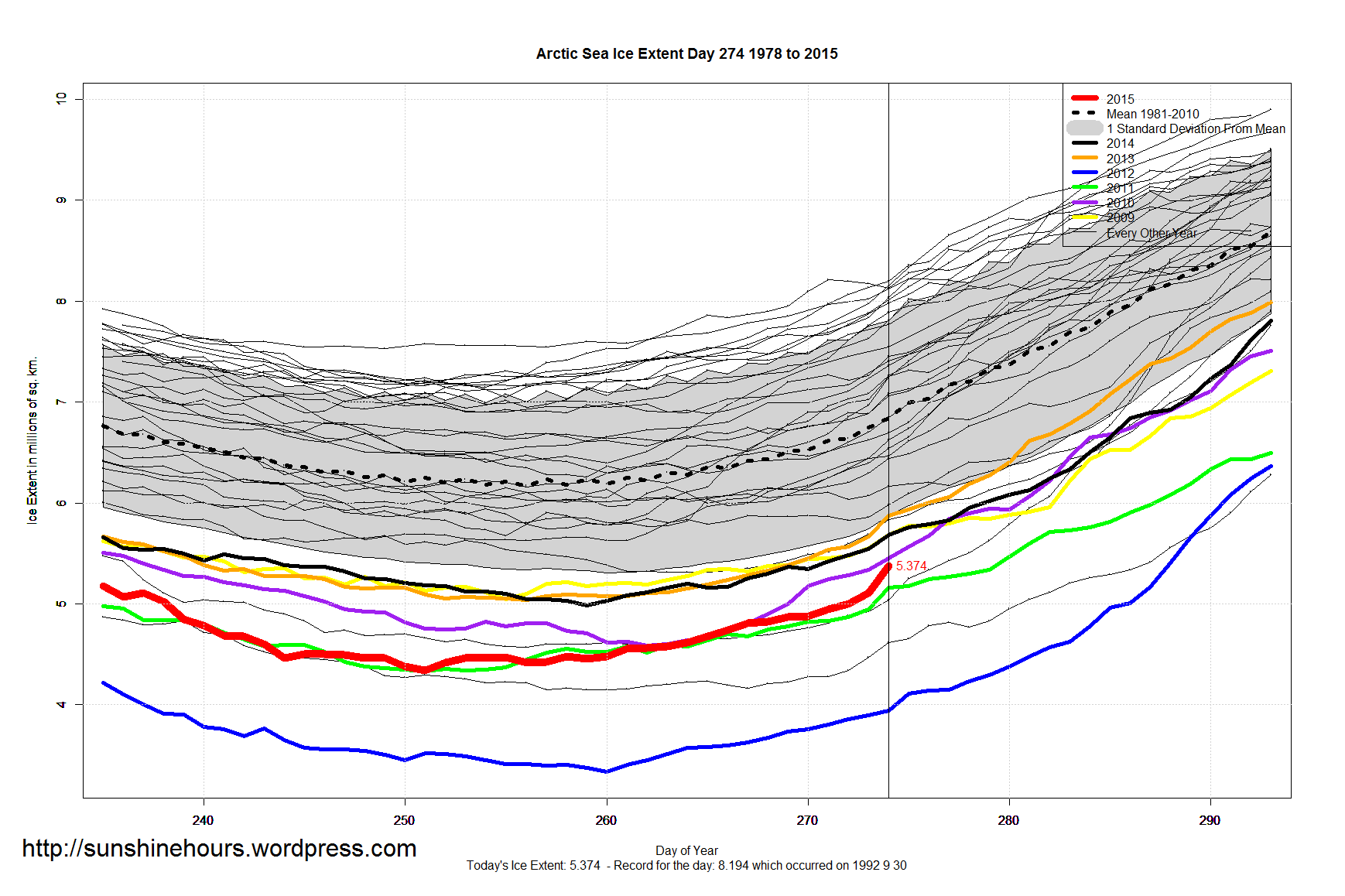 Sea Ice Extent – Day 274 – Arctic 1.4 million sq km Higher Than 2012