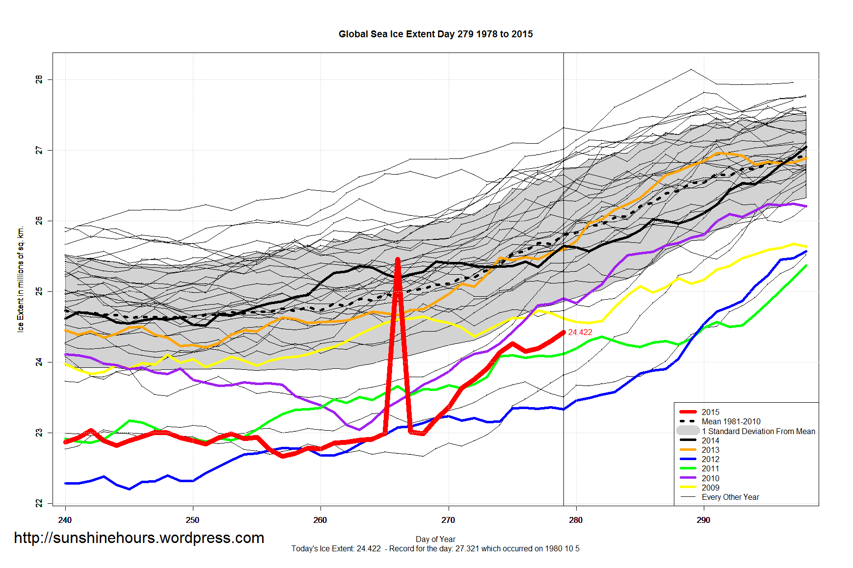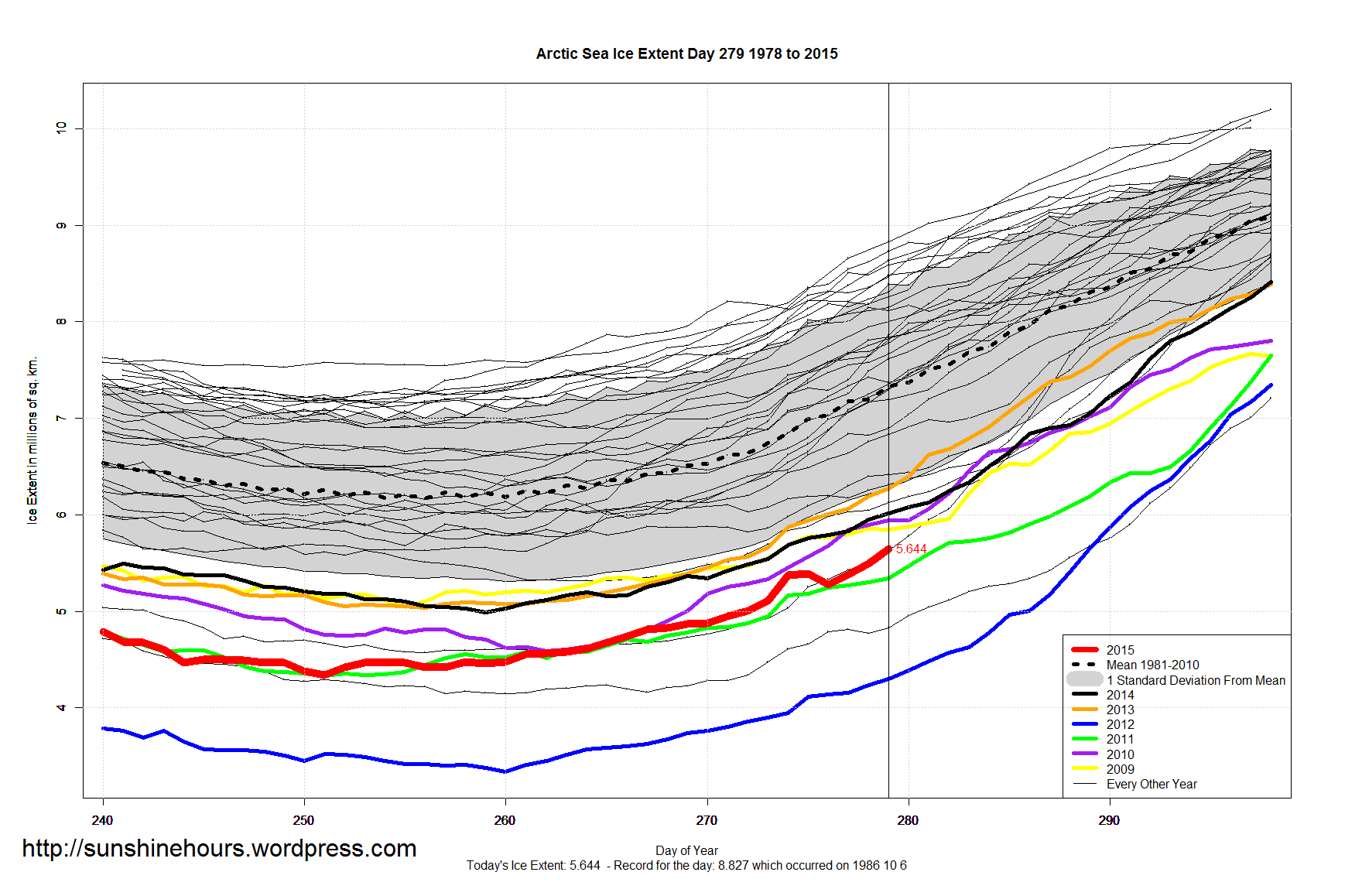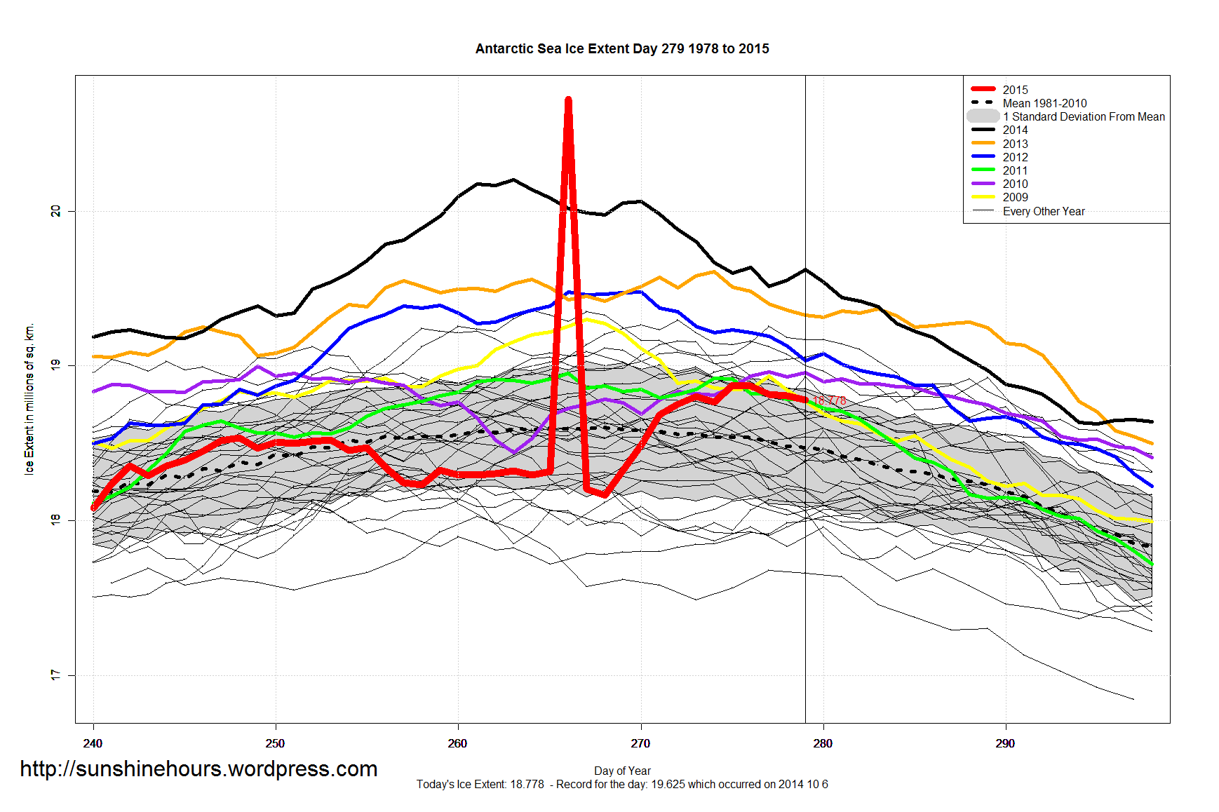 Sea Ice Extent – Day 279 Published on October 7, 2015 by sunshinehours1 South / North Share this: Share on X (Opens in new window) X Share on Facebook (Opens in new window) Facebook Like Loading... Related