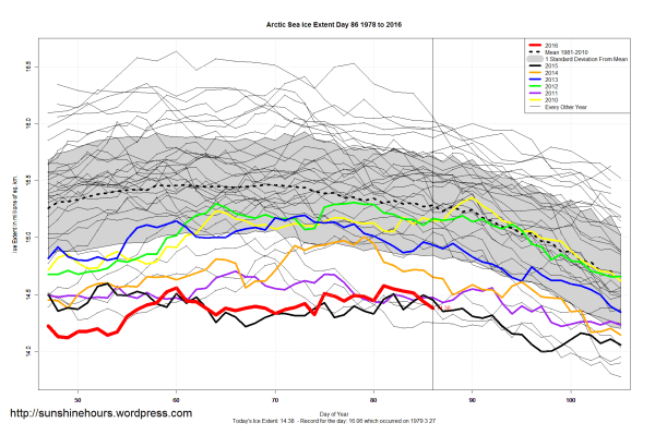 Sea Ice Extent (Global Antarctic and Arctic) – Day 86 – 2016