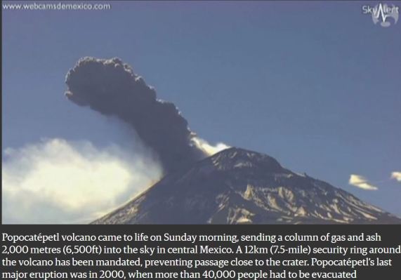 Mexico’s Popocatépetl Volcano Spews Ash and Gas Into Sky